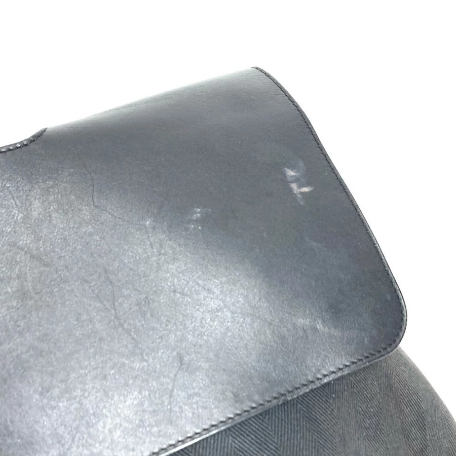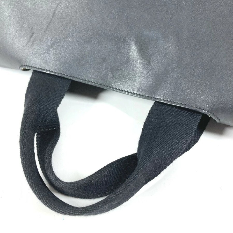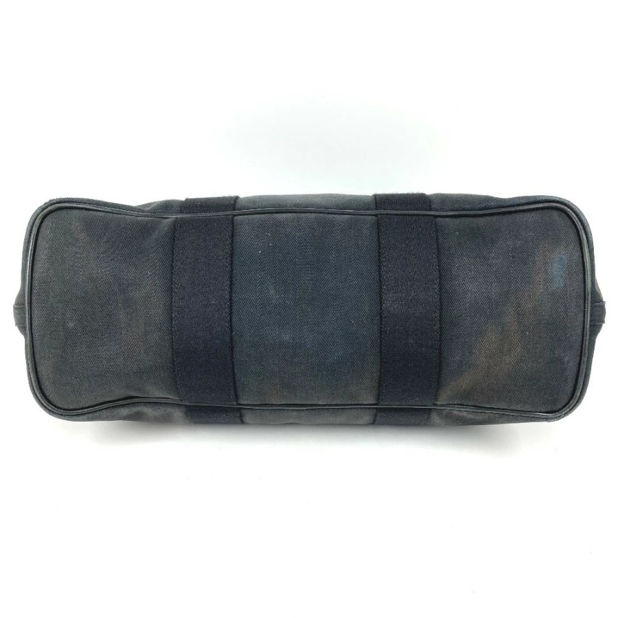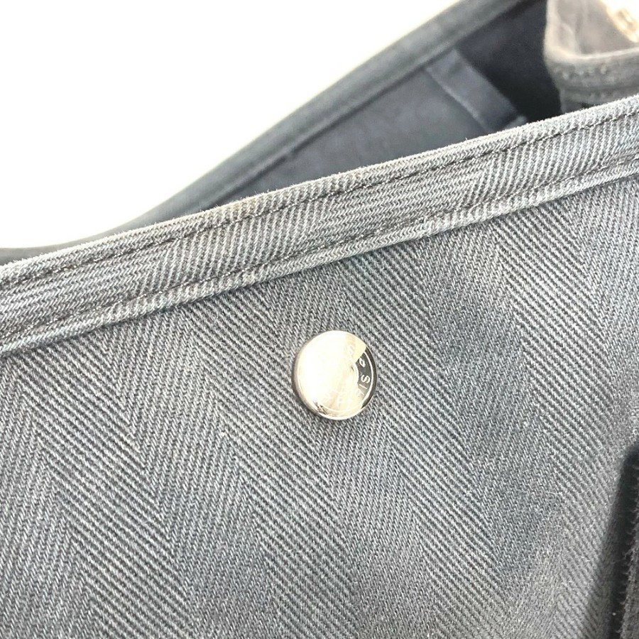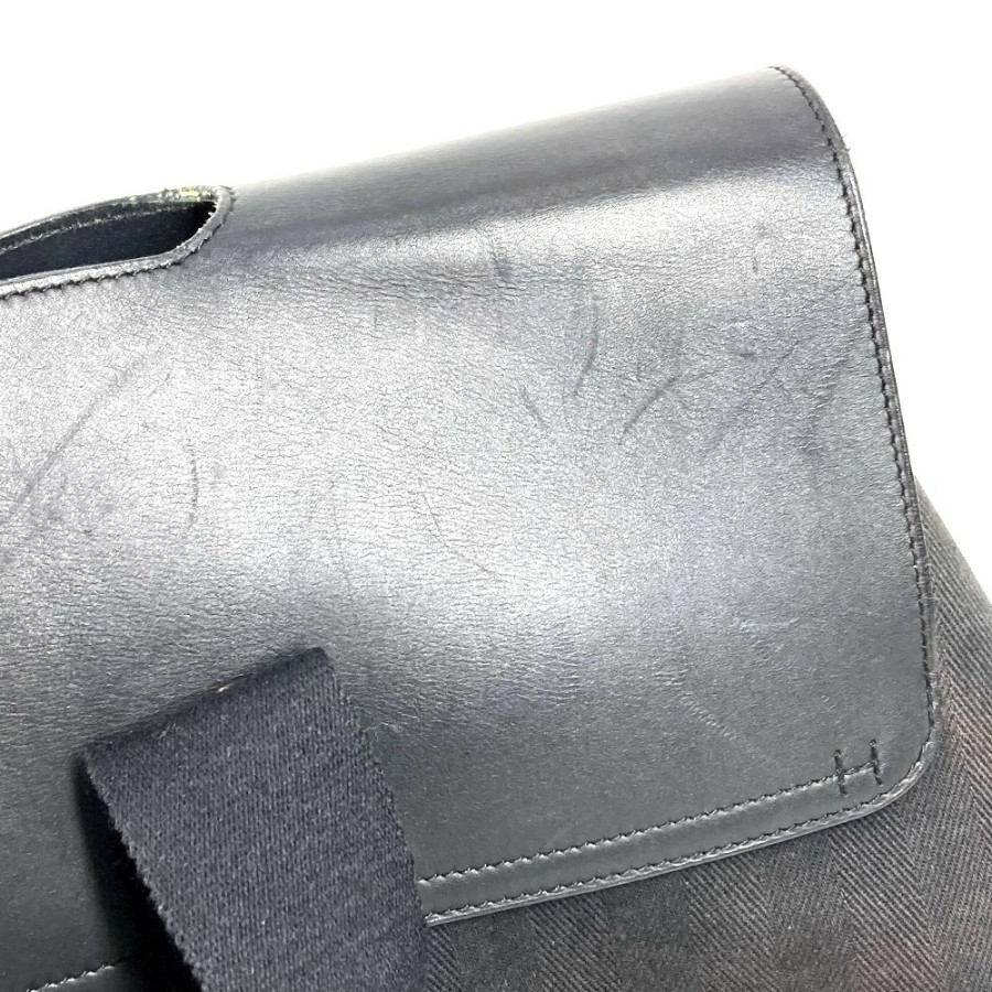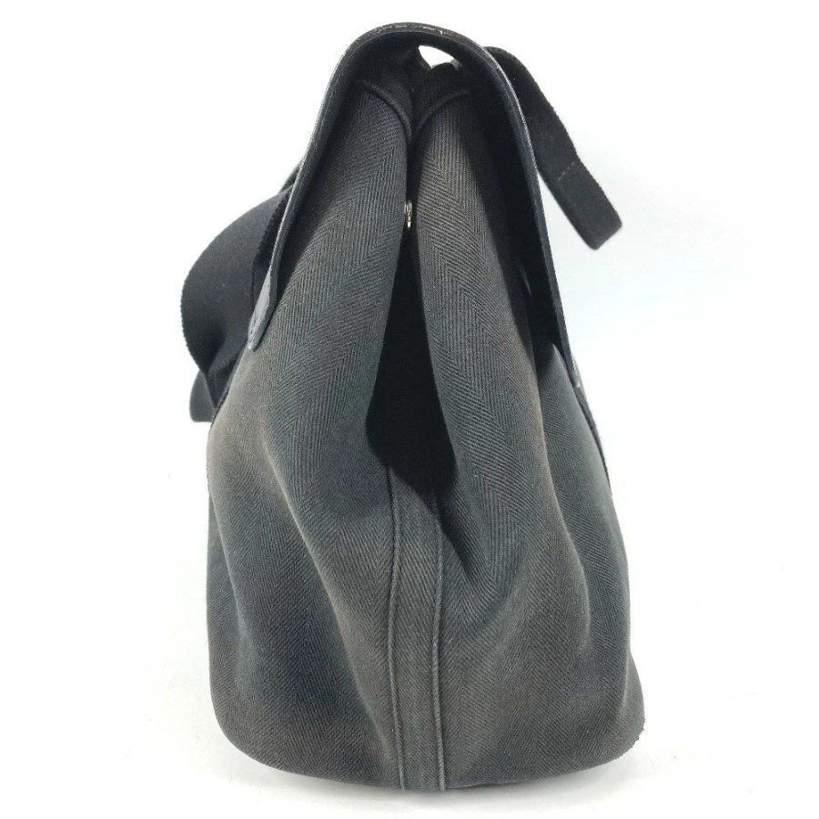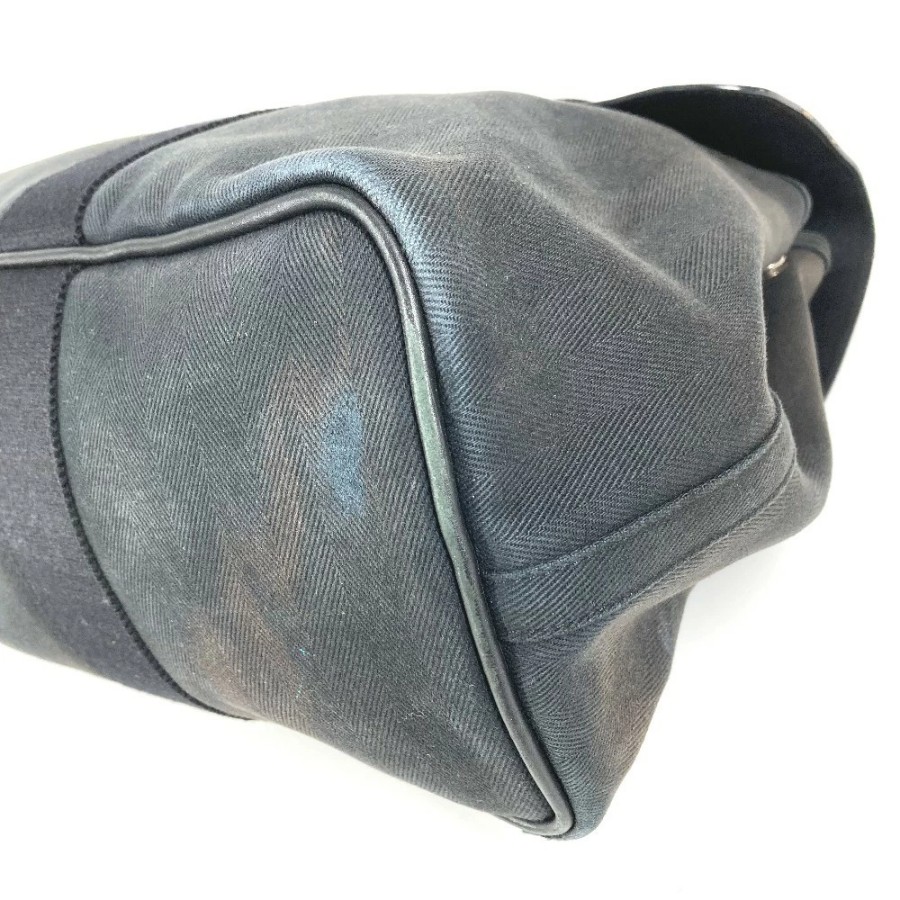 HERMES Valparaiso MM Tote Bag, Flap Tote Bag, Handbag, Toile Chevron Leather, Unisex, Black [Used]