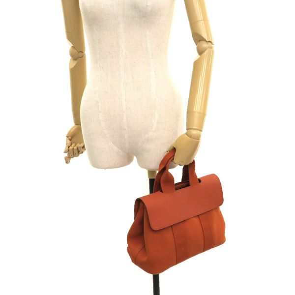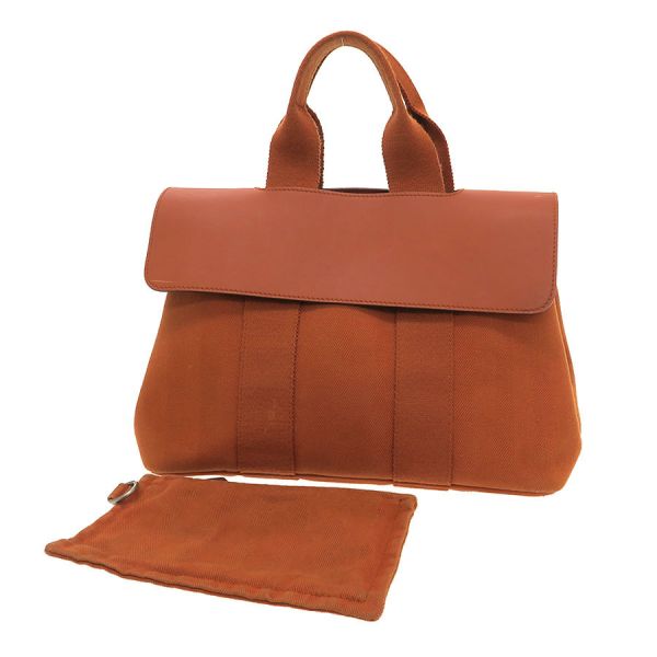 洗練された美しいデザインのカジュアルバッグ『ヴァルパライソPM』のご紹介です。ハンドルの補強ステッチは"H"とさり気なくデザインされており、シンプルなデザインとオレンジの色合いの組み合わせが上品な雰囲気を感じさせてくれますね♪ デイリーユースにちょうどいいPMサイズは普段使いからビジネスまで幅広くご愛用いただけます◎ 中はスリットポケット、ストラップフックが付いており、さらにポーチもございますので、ちょっとした小物類もしっかり分けて収納でき便利です♪ 状態はBランクでの入荷になり、若干の型崩れ、金具にクモリ、かぶせのレザーにスレと色落ち、角スレ、表面スレと薄汚れ、ハンドルに毛羽立ち、内側の生地スレと薄汚れがございます。使用時に問題のあるダメージは見受けられずオススメのアイテムとなります。