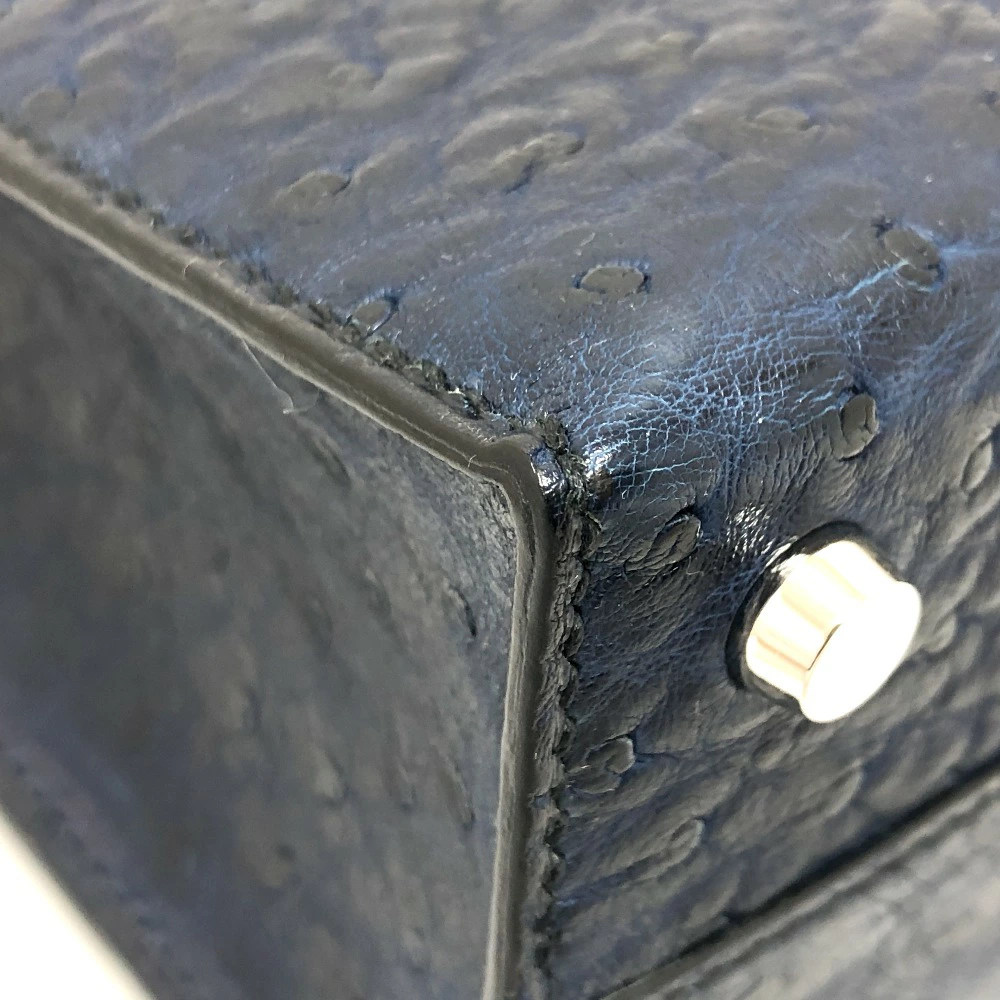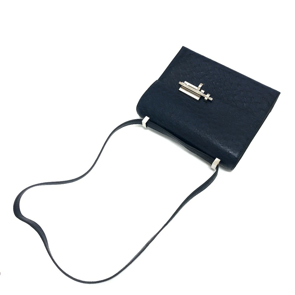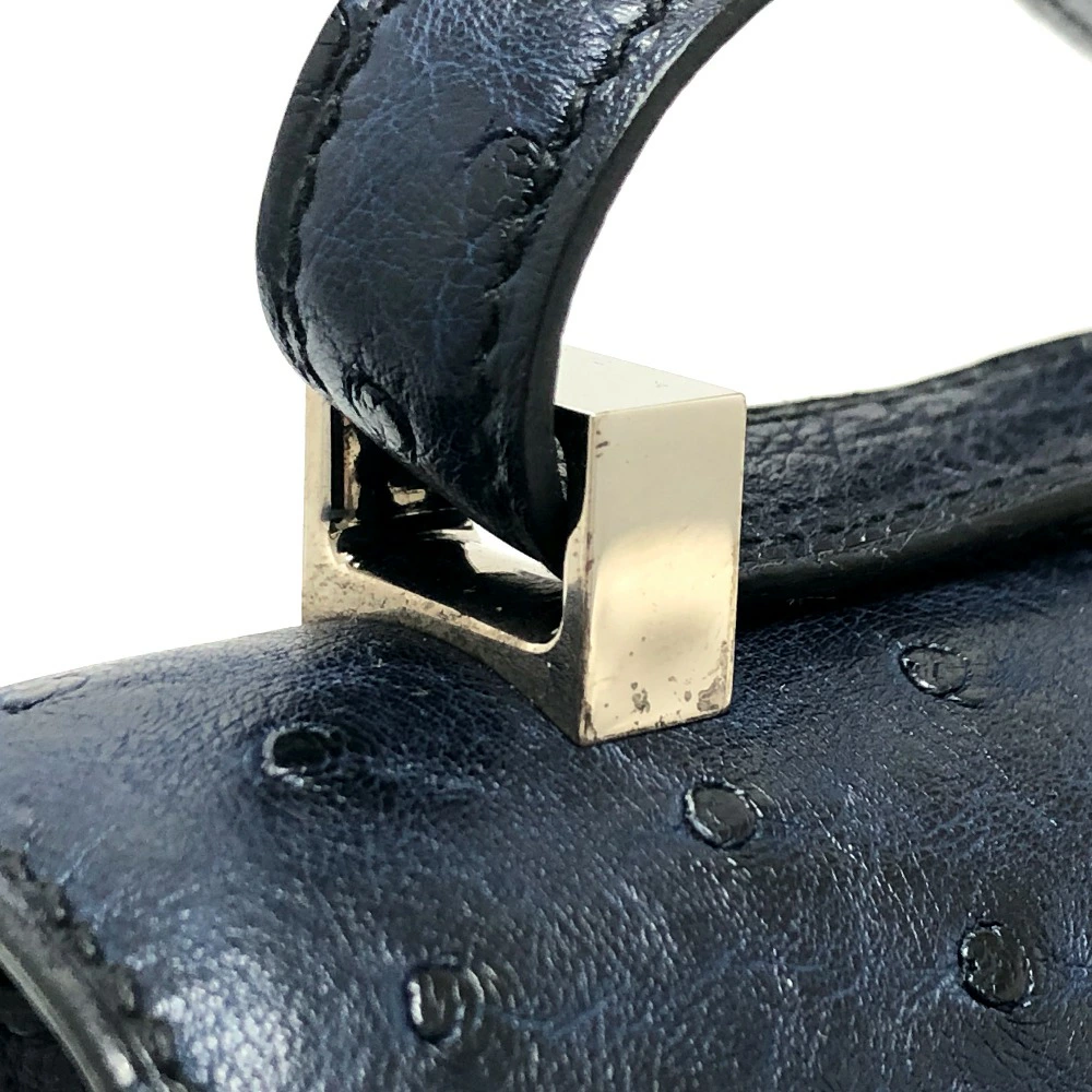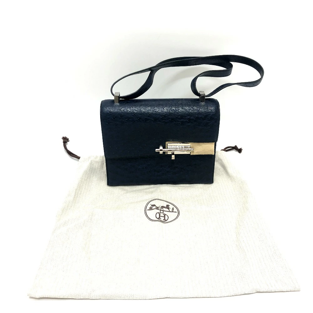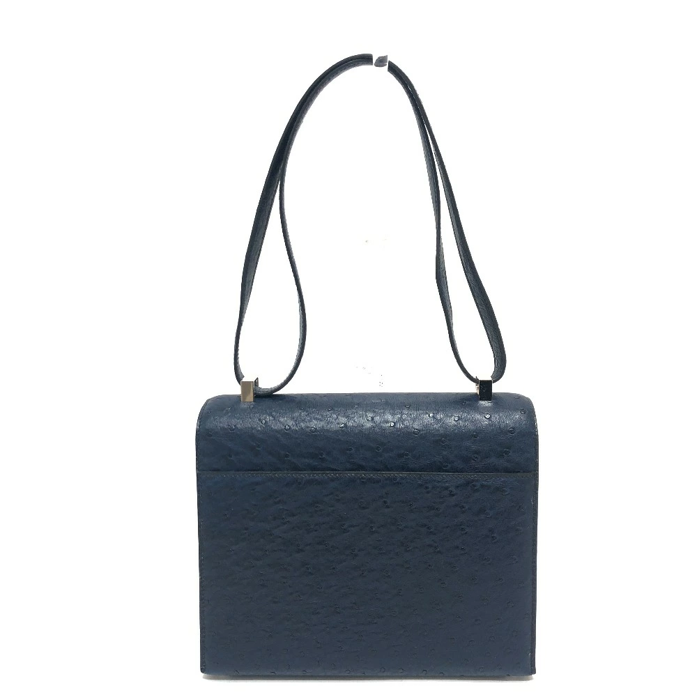 HERMES Velu 23 Shoulder Bag, Ostrich Leather, Blue, Like New, Pre-owned
