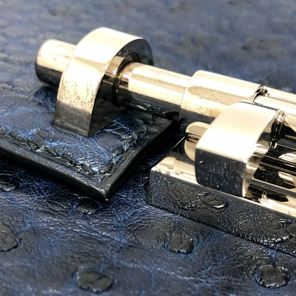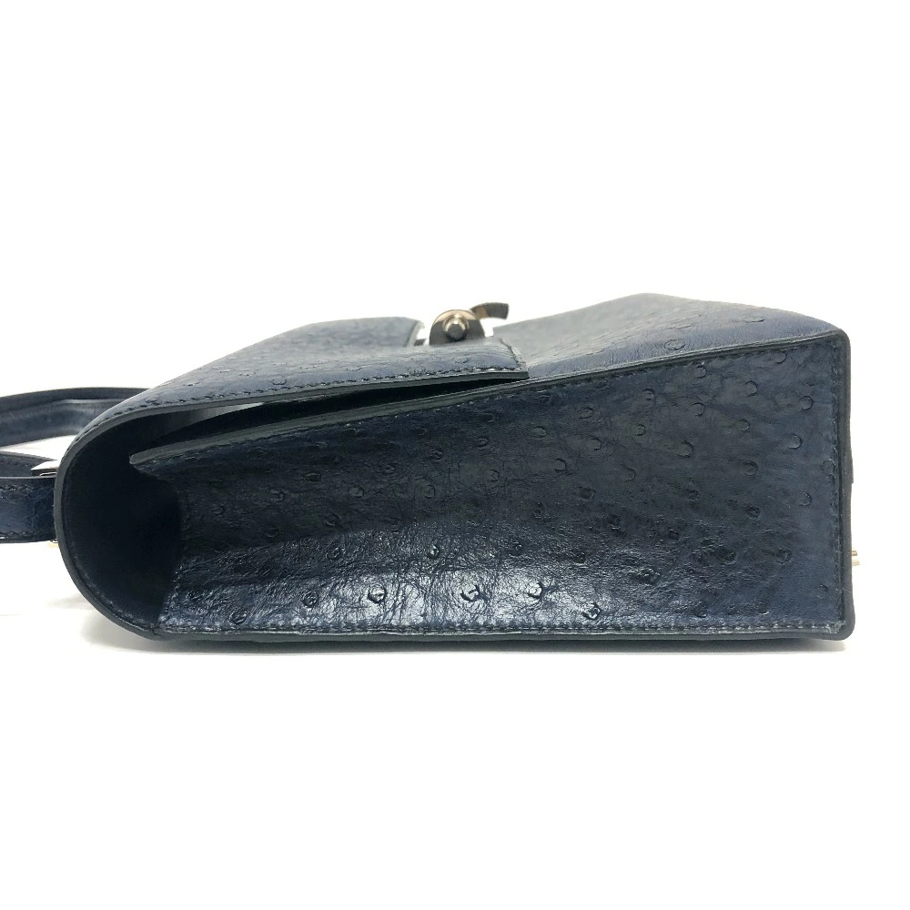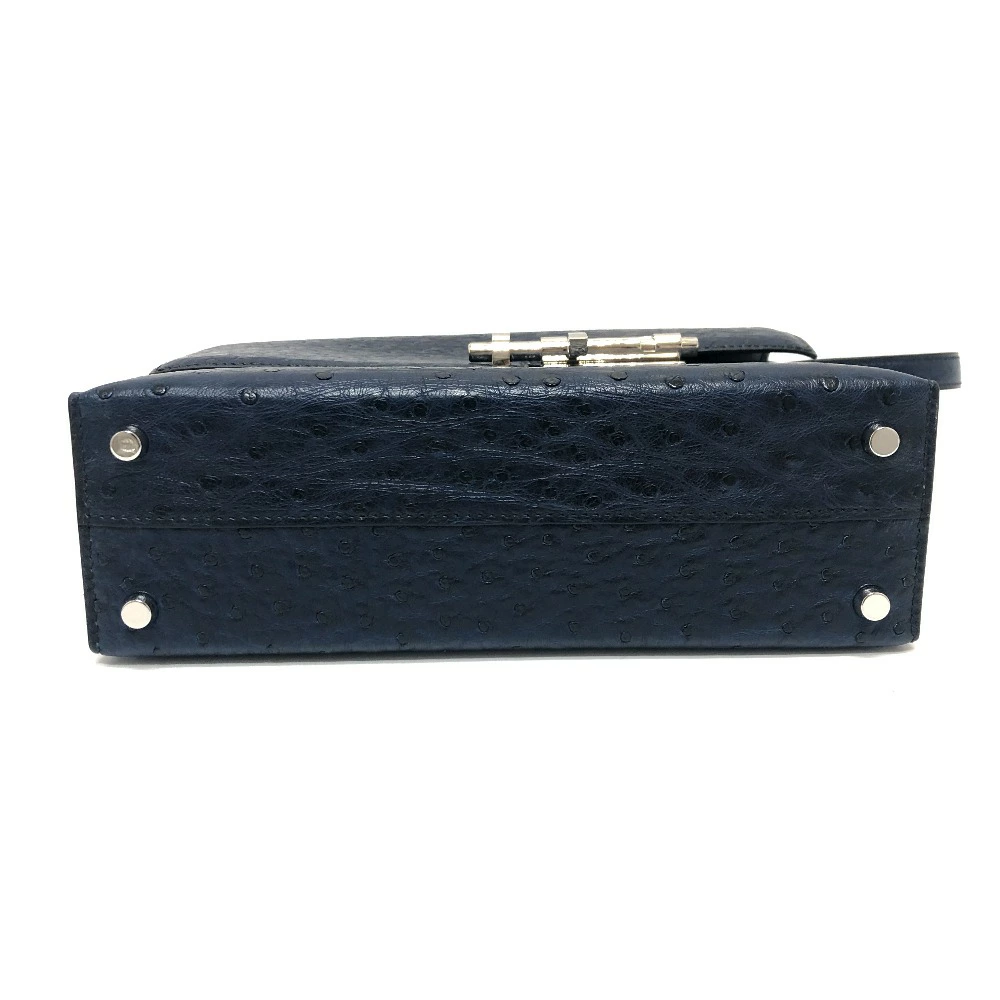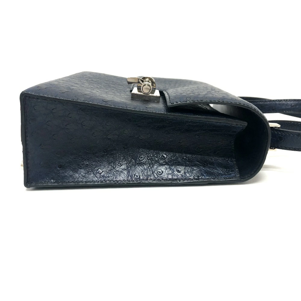 HERMES Velu 23 Shoulder Bag, Ostrich Leather, Blue, Like New, Pre-owned