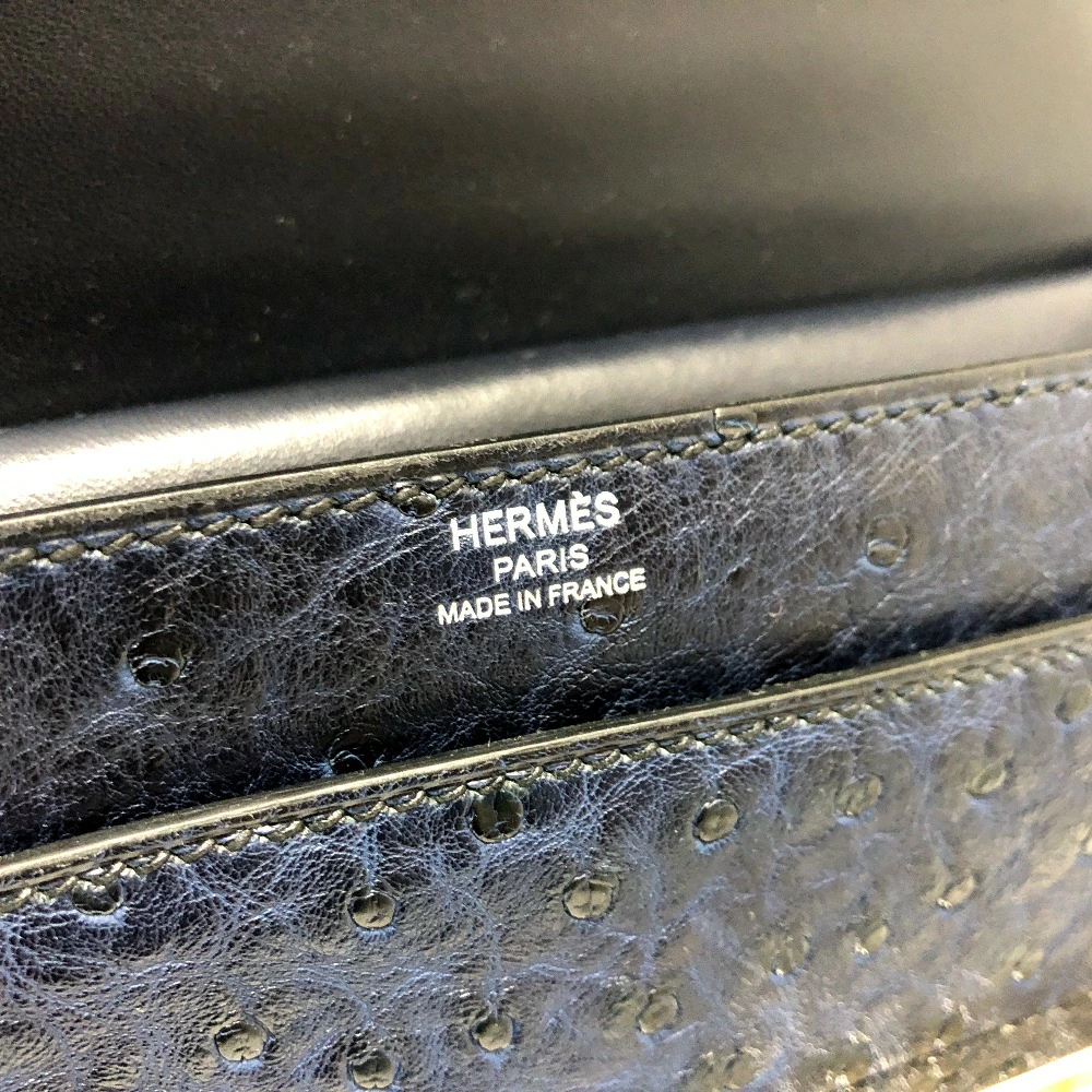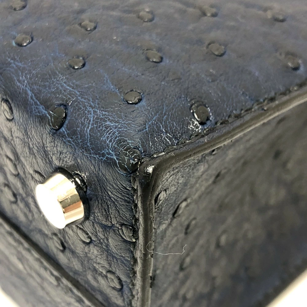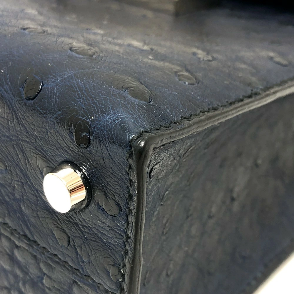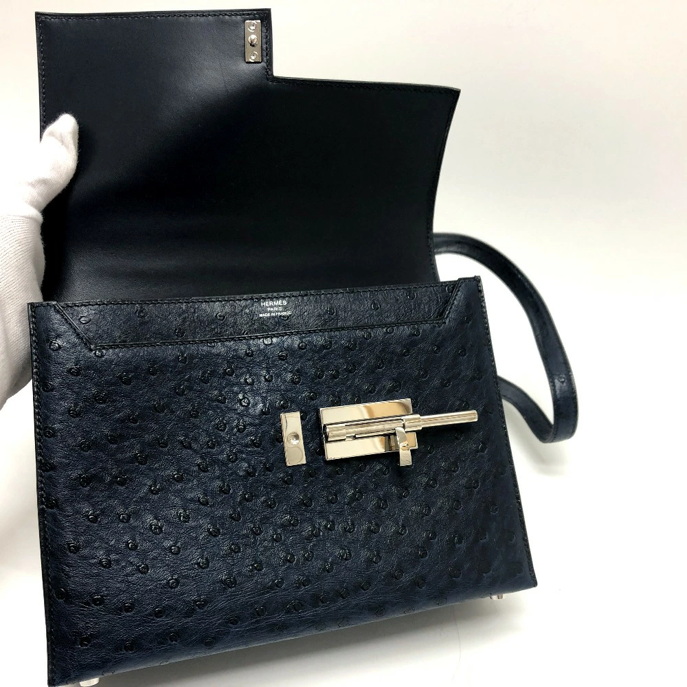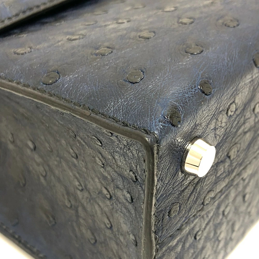 HERMES Velu 23 Shoulder Bag, Ostrich Leather, Blue, Like New, Pre-owned