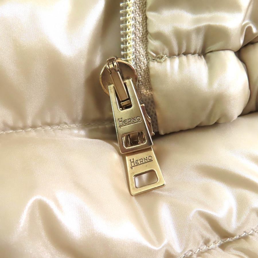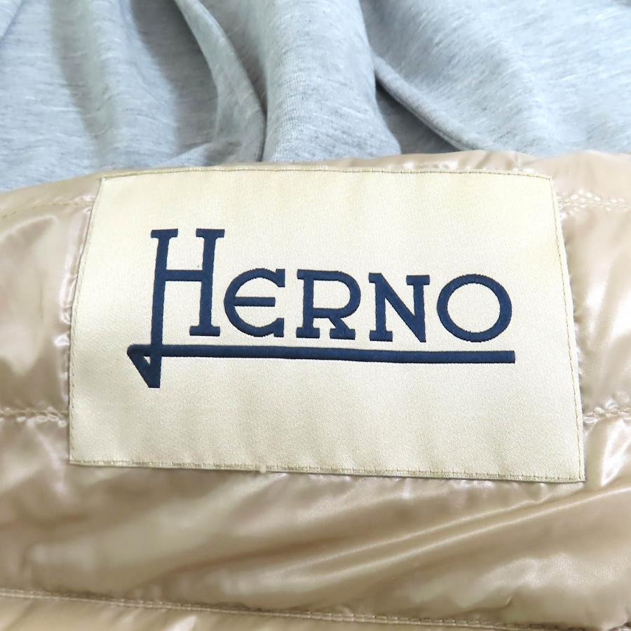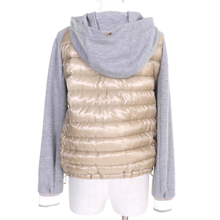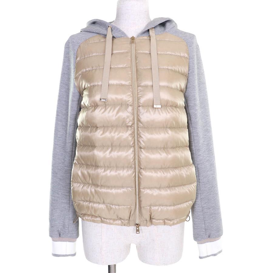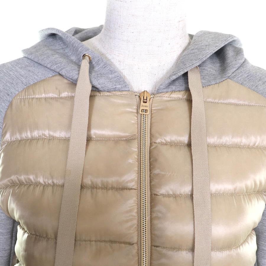 Herno Down Jacket with Hood and Sweatshirt, Zip-Up, Beige/Gray, Nylon/Polyester, P10920D