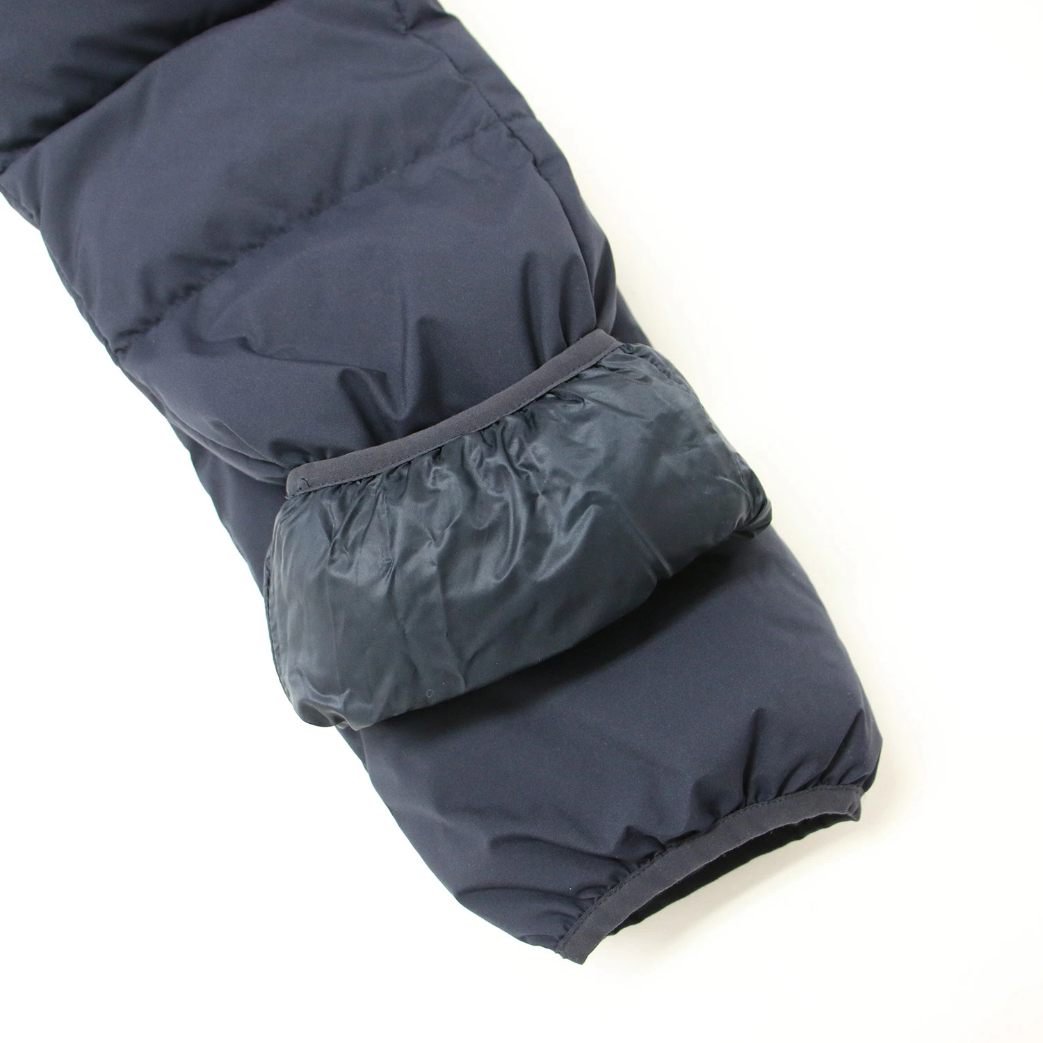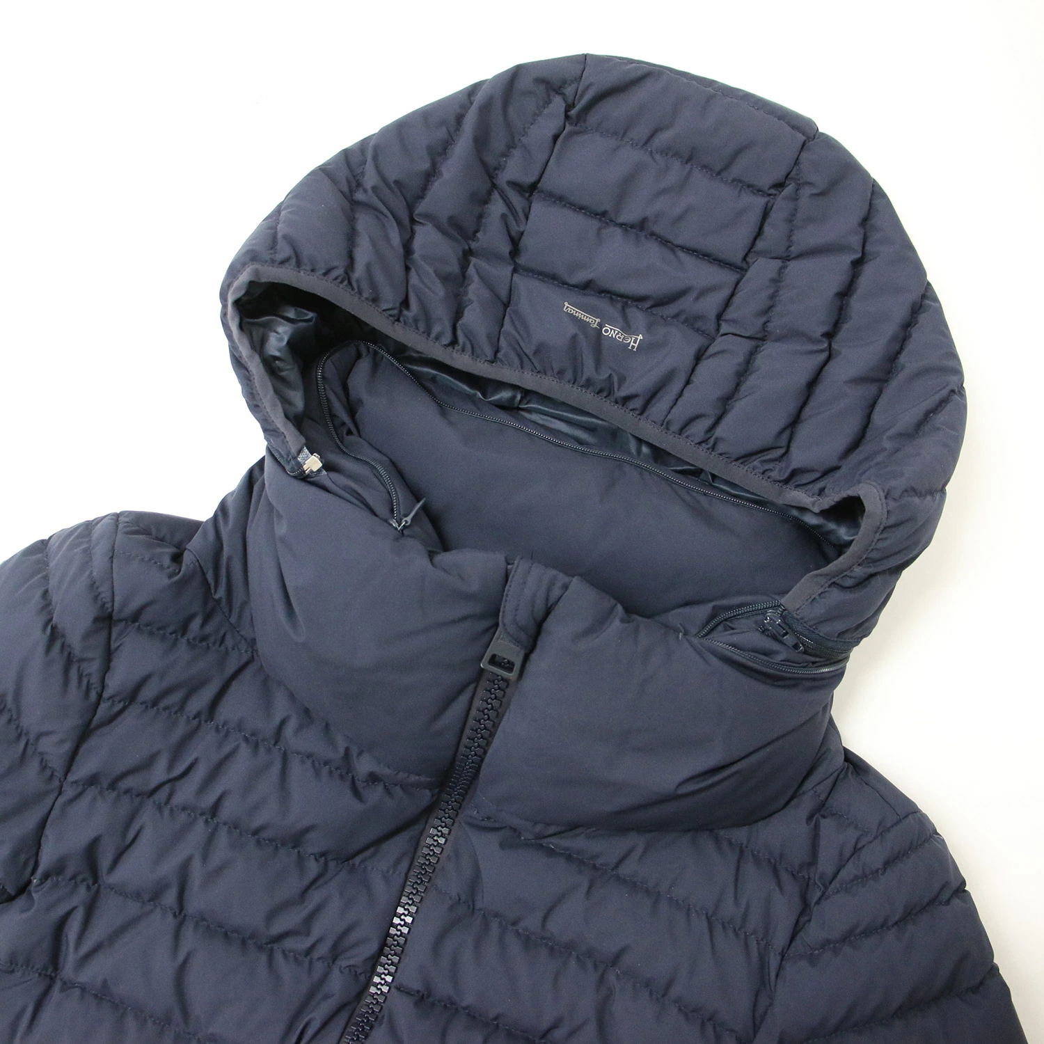 | 素材 | 表地 ポリエステル 100%(合成樹脂ラミネート) 裏地 ナイロン 100% トリミング ナイロン 85% ポリウレタン 15% 詰物 ダウン 80% フェザー 20% |
