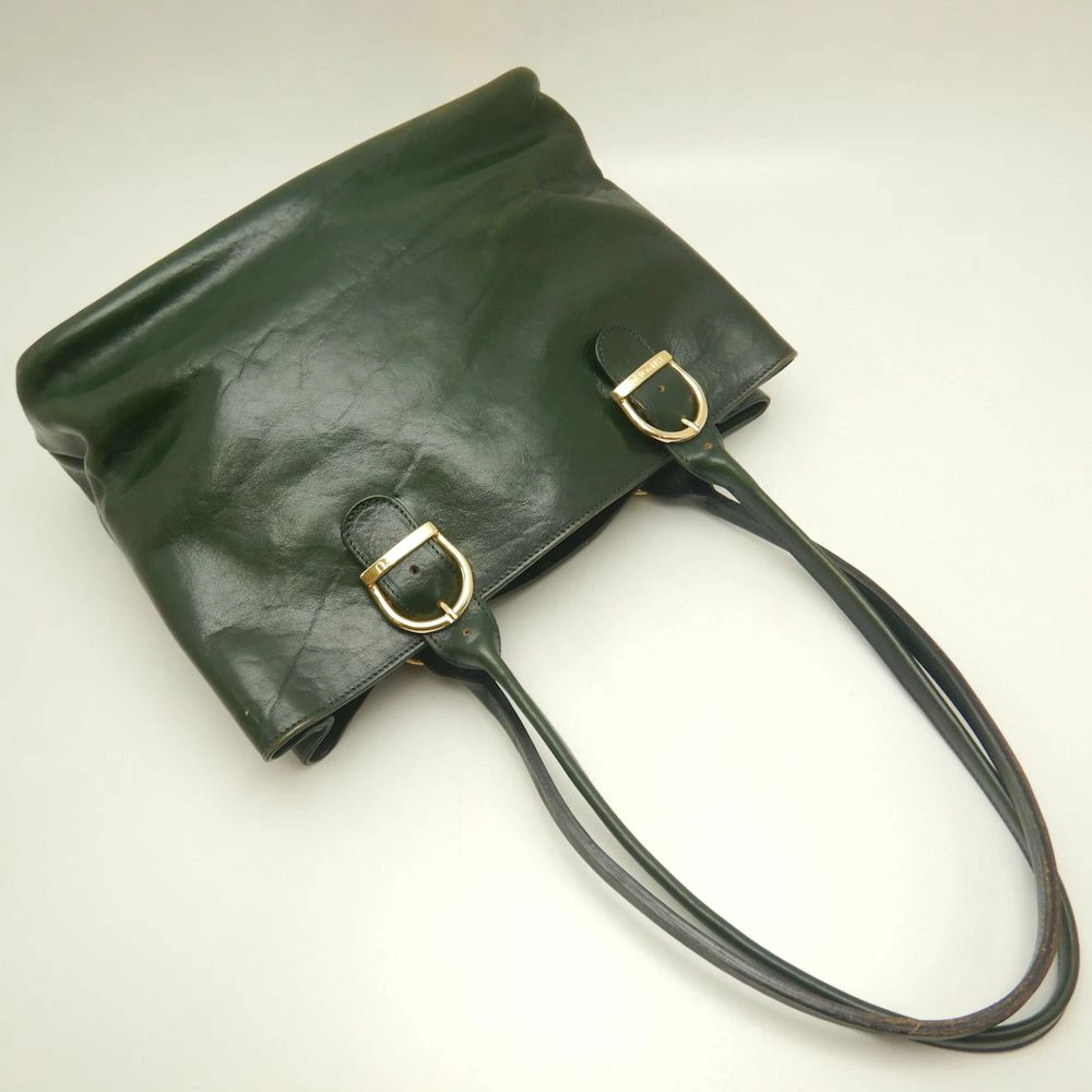 | 商品説明 | | 取扱店舗 | 新富町店 (TEL049-229-2700) | | 状態 | 中古Bランク | | 素材 | レザー | | 色 | グリーン / ゴールド金具 | | サイズ | W31cm×H22cm×D13cm