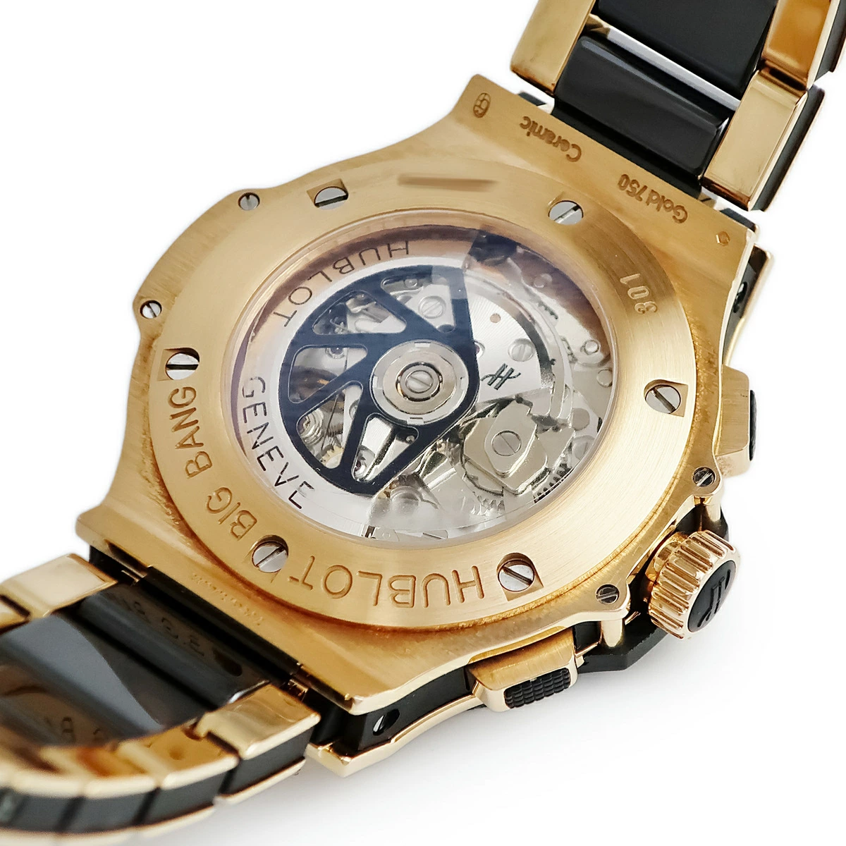 ウブロ HUBLOT ビッグバン ゴールド セラミック 301.PB.131.PB K18RG無垢 クロノグラフ ブラック メンズ 腕時計自動巻き ブラック 【中古】【店頭受取不可】