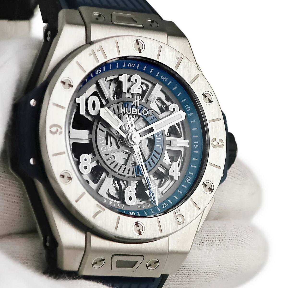 Hublot Big Bang Unico Titanium GMT 471.NX.7112.RX Skeleton Day & Night Men's Automatic Watch, Silver [Pre-owned]