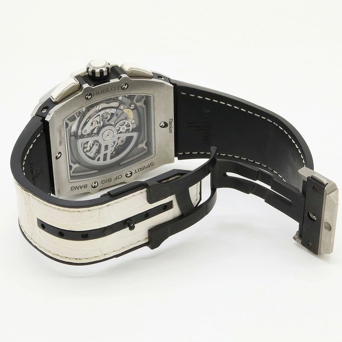 トノー型ケースが特徴的な「スピリット・オブ・ビッグバン」。ダイヤルとケースバックがシースルーになっているため、その精密な動きをご覧頂けます。
