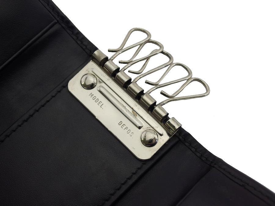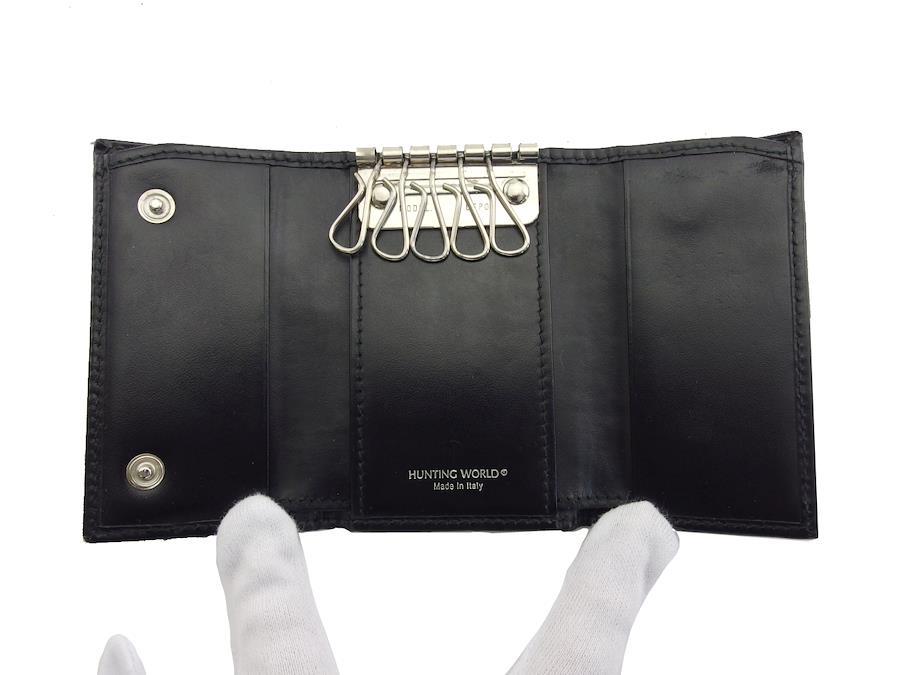 ■管理番号:T24792■ブランド:ハンティングワールド HUNTING WORLD■型番:220-525■表記カラー:ブラック×シルバー■カラー:ブラック×シルバー■形:キーケース■性別:レディース■サイズ:■仕様:■備考:[開口部]Wボタンホック[内側]キーフック×5(6連の内1本欠損)札入れ×1オープンポケット×2両開きオープンポケット×1横幅:約7cm縦幅:約9.8cm奥行:約2.2cm■付属品:保存箱(傷 あり)※写真・説明段に表記されている付属品以外は付属しておりません。■状態ランク:【6】中古品 ※通常の使用感があるお品物