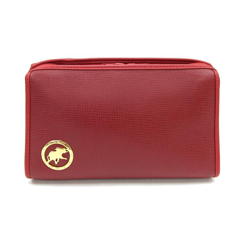 ハンティングワールドセカンドバッグレッドレザー中古赤化粧ポーチコスメポーチメンズレディスHUNTINGWORLD