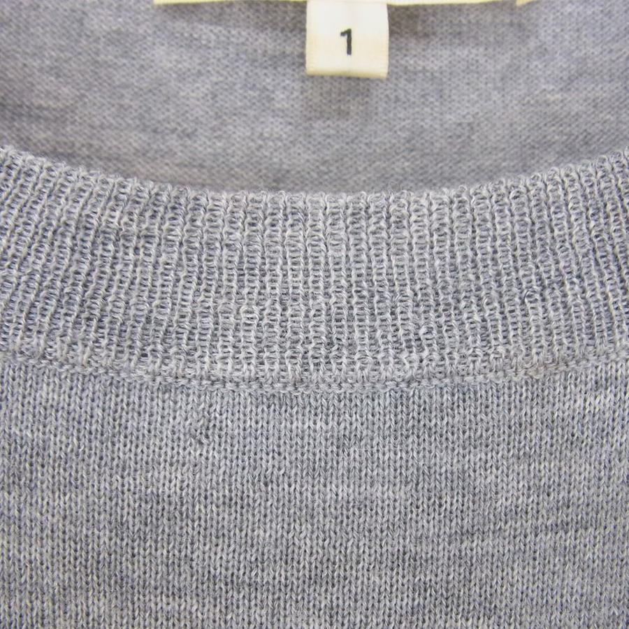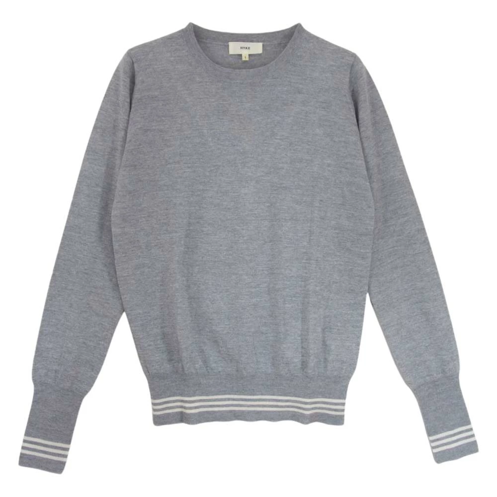 HYKE 132-11004 Wool Knit Sweater with Striped Sleeves and Ribbed Stripes, Gray, Size 1, Women's [Used]