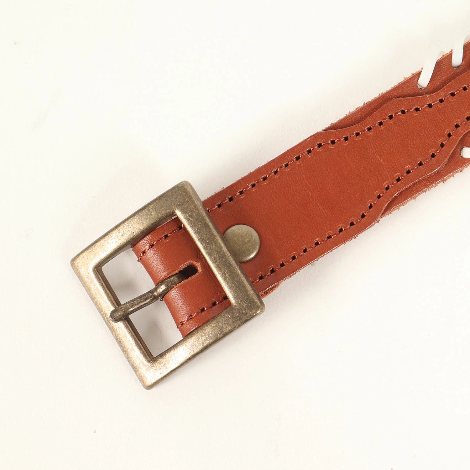 | サイズ | FREE全長(バックル含む):約96.5cm 穴まで(バックルピンから):最短約73.5cm×最長約86cm×幅約2.5cm バックル:縦約3.5cm×横約3.5cm |