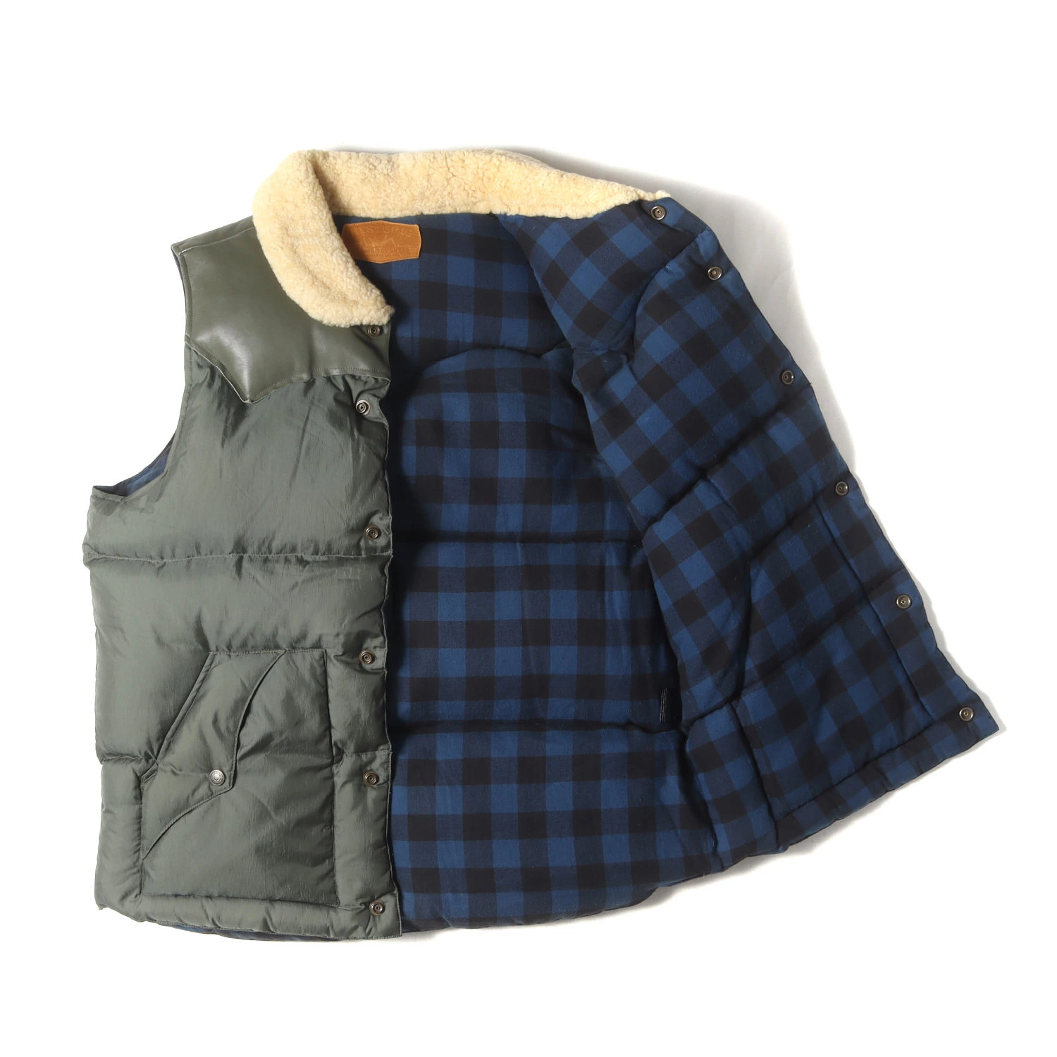 | 商品説明 | ナイロン生地を使用し、スナップボタンで仕上げたロッキーマウンテンタイプのダウンベストです。襟にムートンボア、ヨークにカウレザー、裏地にチェックネル素材を取り入れたデザインです。 |