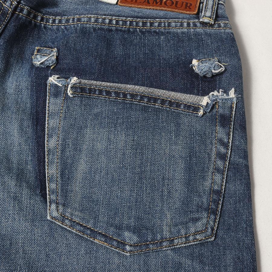| 商品説明 | ・しっかりとした堅牢なコットンデニム生地 ・ヴィンテージダメージ加工 ・フロントボタンフライ ・右ポケット口スタッズデザイン ・スリムタイトシルエット |