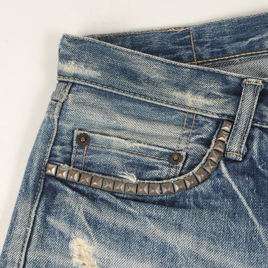 | 商品説明 | ・コットンセルビッジデニム地 ・ヴィンテージ加工 ・左ポケットスタッズデザイン |