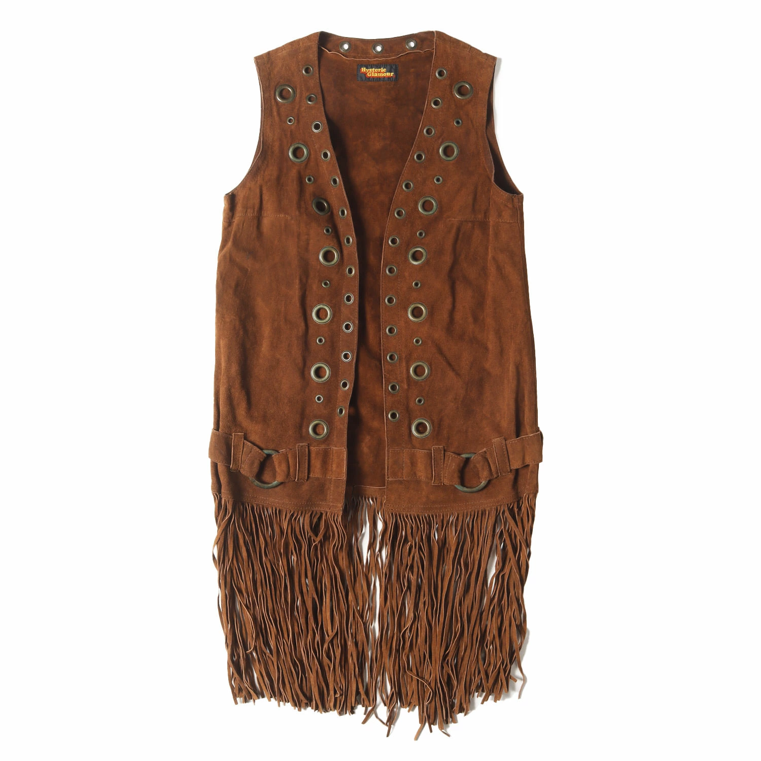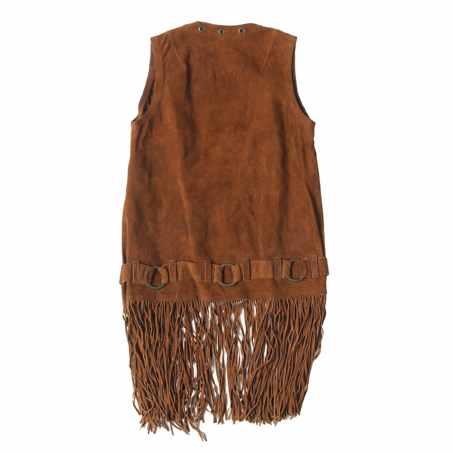 | 商品説明 | フリンジをデザインしたウエスタン調のカウスウェードベストになります。 |
