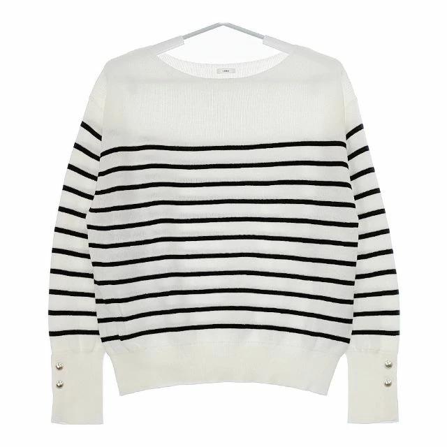 IENA Striped Pullover Long Sleeve Cotton Sweater Knit in White and Black, Women's, Pre-owned, Item Number 5-0604M