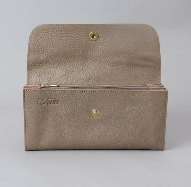 | 商品説明 | 【製品仕様】 ブランド:IL BISONTE 型番:SCW020 PV0005 アイテム:長財布/ロングウォレット 対象:ユニセックス カラー:ナチュラル(NA106) 素材:牛革(ヌメ革・本革) 仕様:長財布タイプ/札入れ/カードポケット 生産国:イタリア 【商品説明】 イルビゾンテならではの上質なヌメ革を使用した長財布です。 使い始めは明るいナチュラルカラーで、使い込むほどに深みのある飴色へと変化する経年変化を楽しめます。 シンプルで無駄のないデザインは、男女問わず使いやすく、 カジュアルからきれいめまで幅広いスタイルにマッチ。 収納力のあるロングウォレットタイプで、 紙幣やカードをすっきり整理でき、実用性にも優れています。 |
