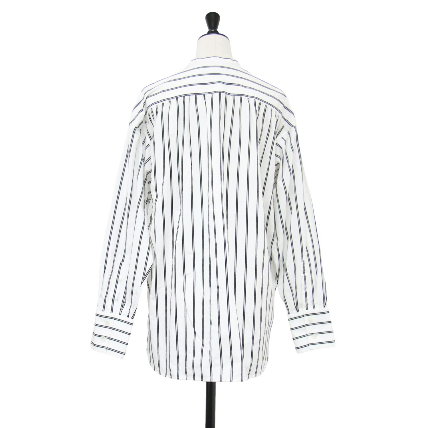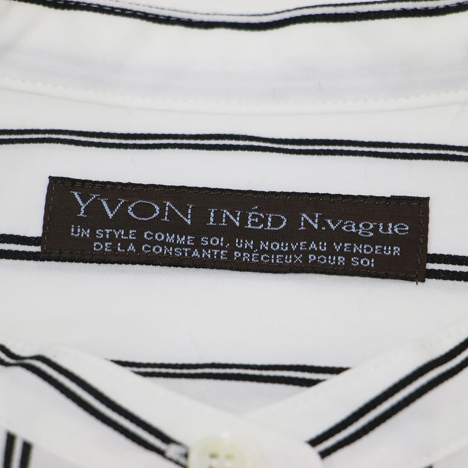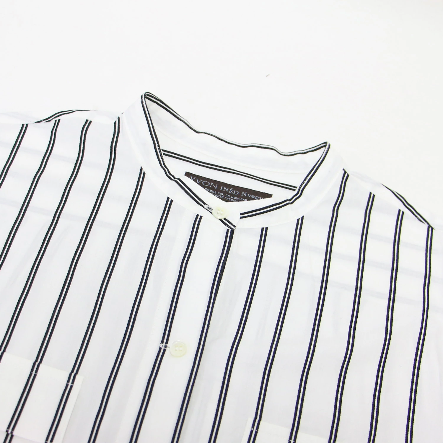 INED Shirt, White/Black, Size 9 (M), Fall/Winter 2024, Striped Band Collar Shirt, Cotton, Long Sleeve, Oversized, Top, Blouse, Women's, Pre-owned, Excellent Condition, K4614