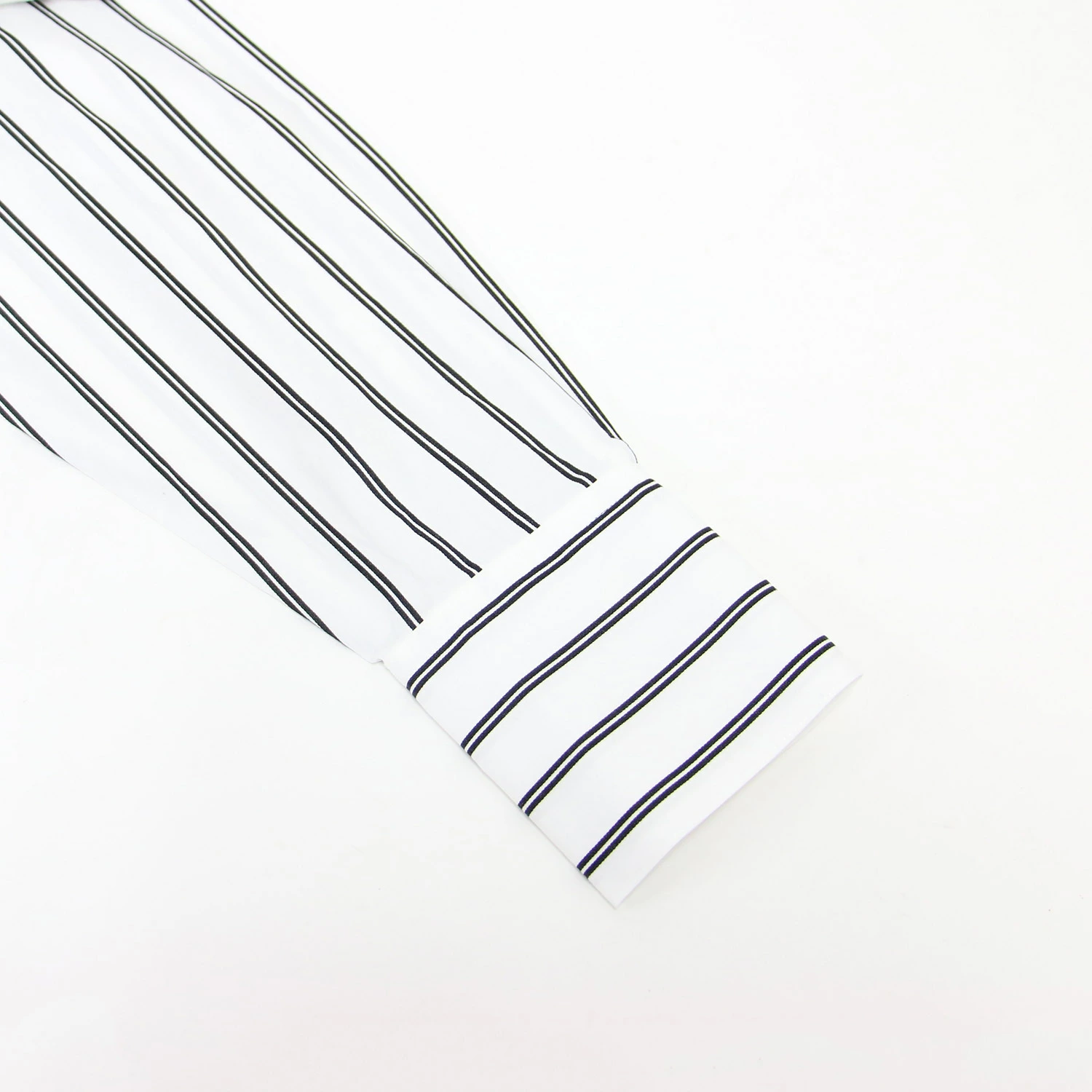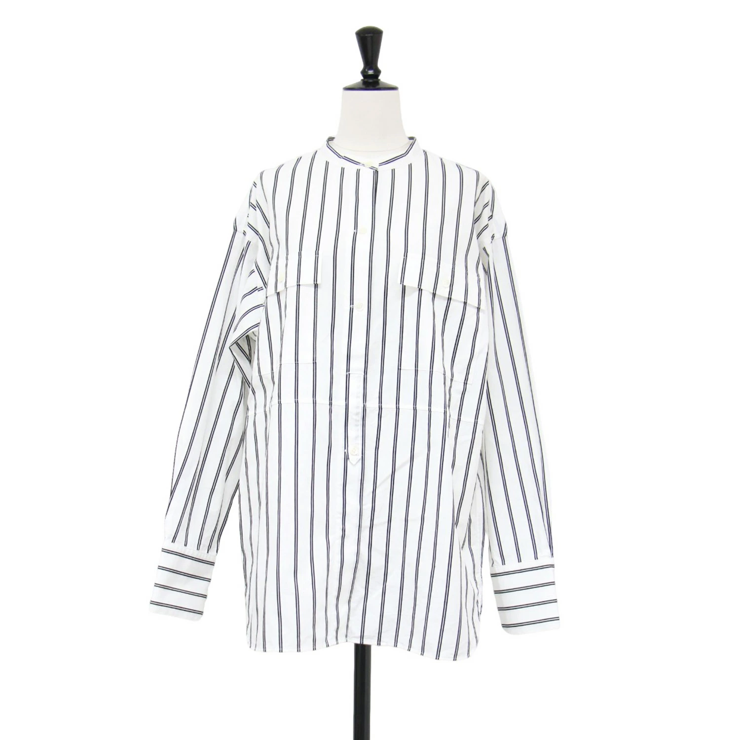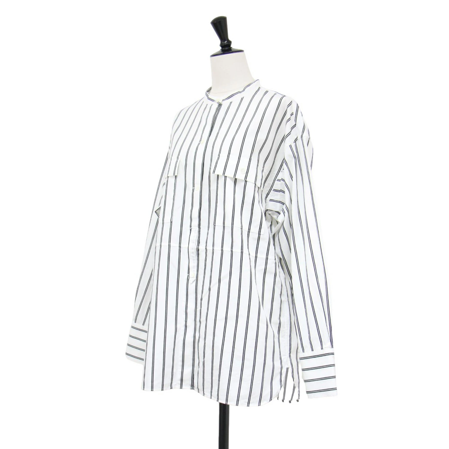 INED Shirt, White/Black, Size 9 (M), Fall/Winter 2024, Striped Band Collar Shirt, Cotton, Long Sleeve, Oversized, Top, Blouse, Women's, Pre-owned, Excellent Condition, K4614