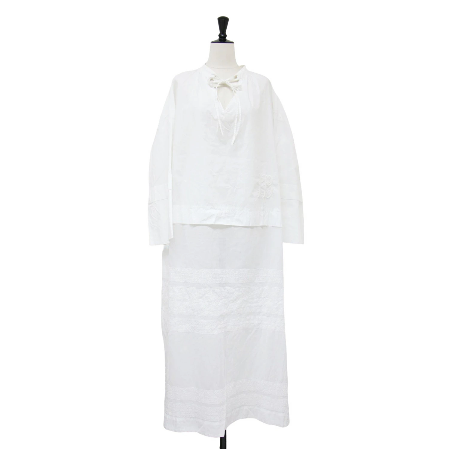 INSCRIRE Embroidered Dress, White, Size: Free / Maxi Length, Embroidered Slit, Ribbon, Cotton / Made in Japan / Women's Dress [Pre-owned] [K4619]