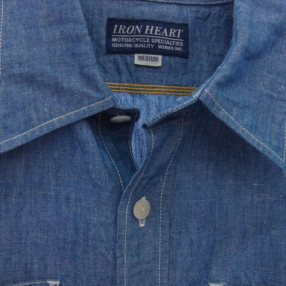 ライトブルー系【モデル】5oz コットンリネン シャンブレー 長袖 ワークシャツ