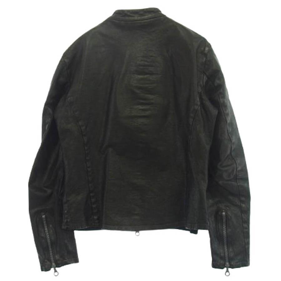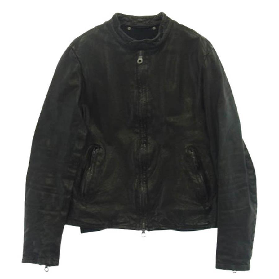 ブラック系【モデル】ITALY SHOULDER GARMENT-DYED JACKET 英字ライニング付き イタリアンショルダー 製品染め シングルライダースジャケット