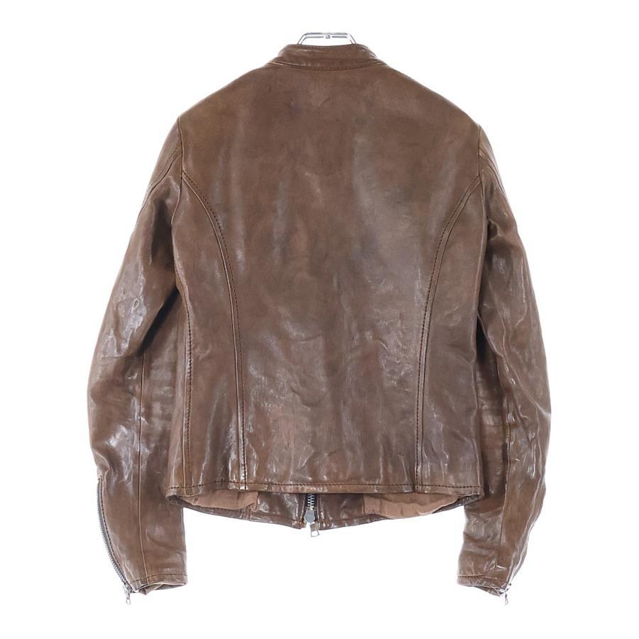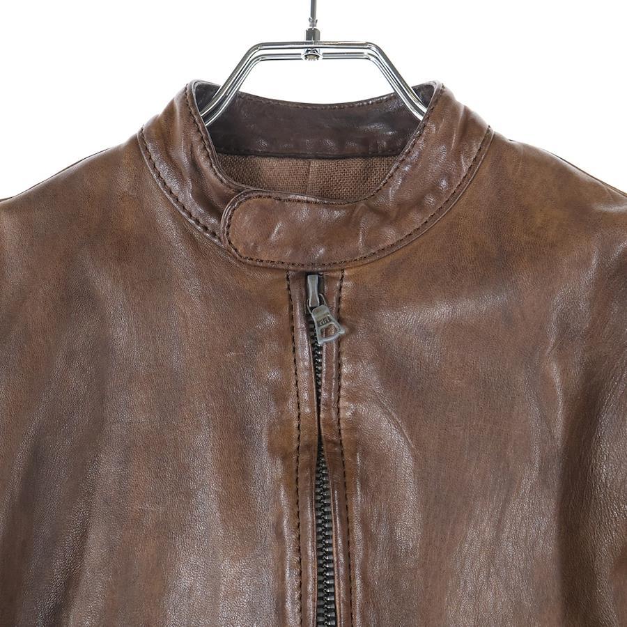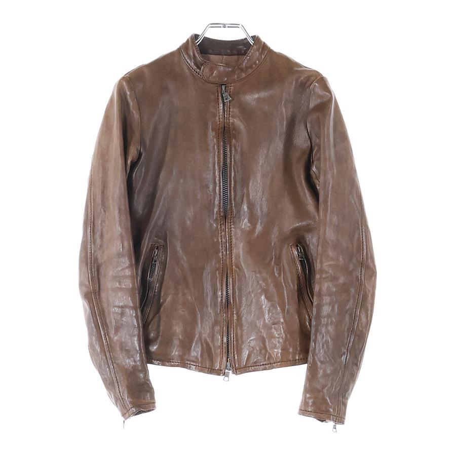 [モデル]ホースハイド 馬革 ジップアップ シングルライダースジャケット ブラウン