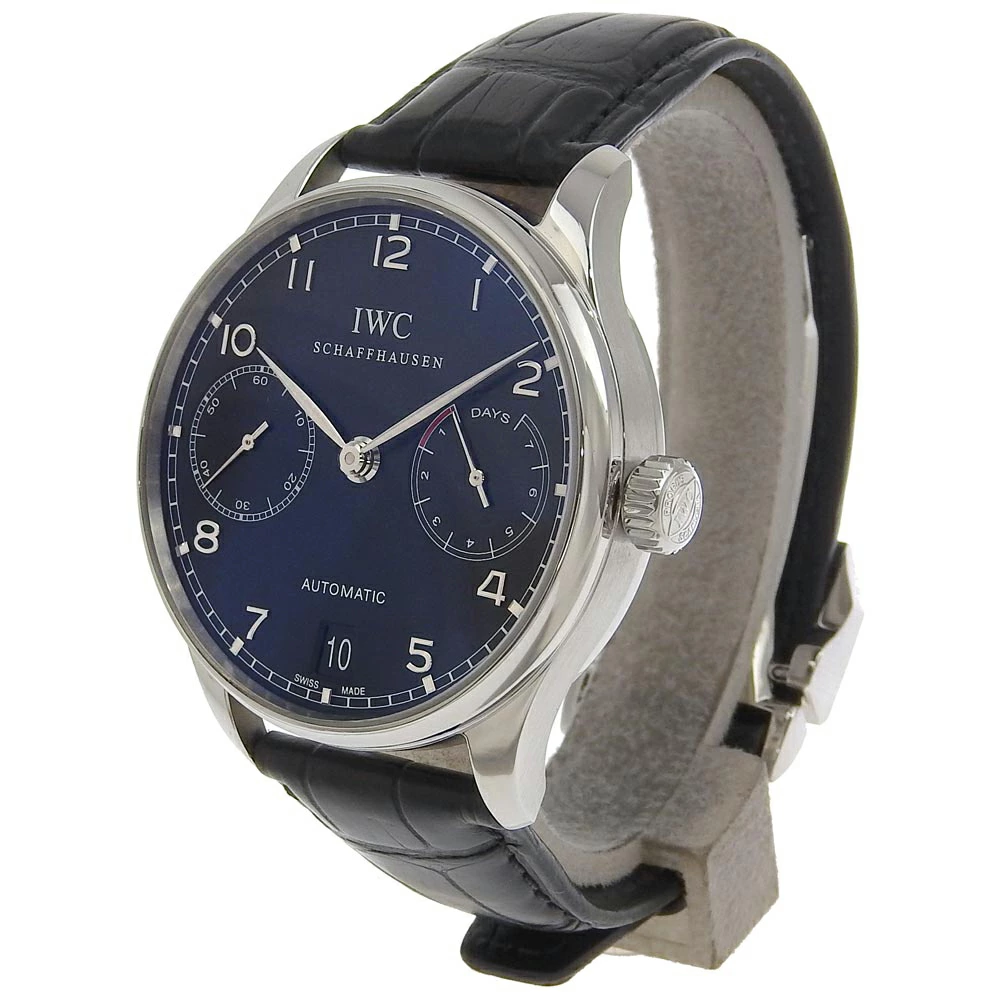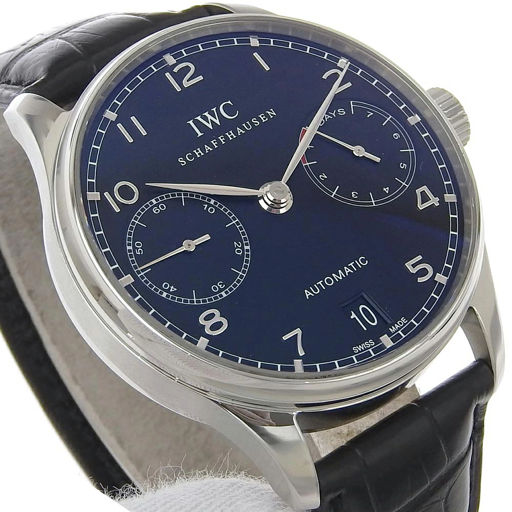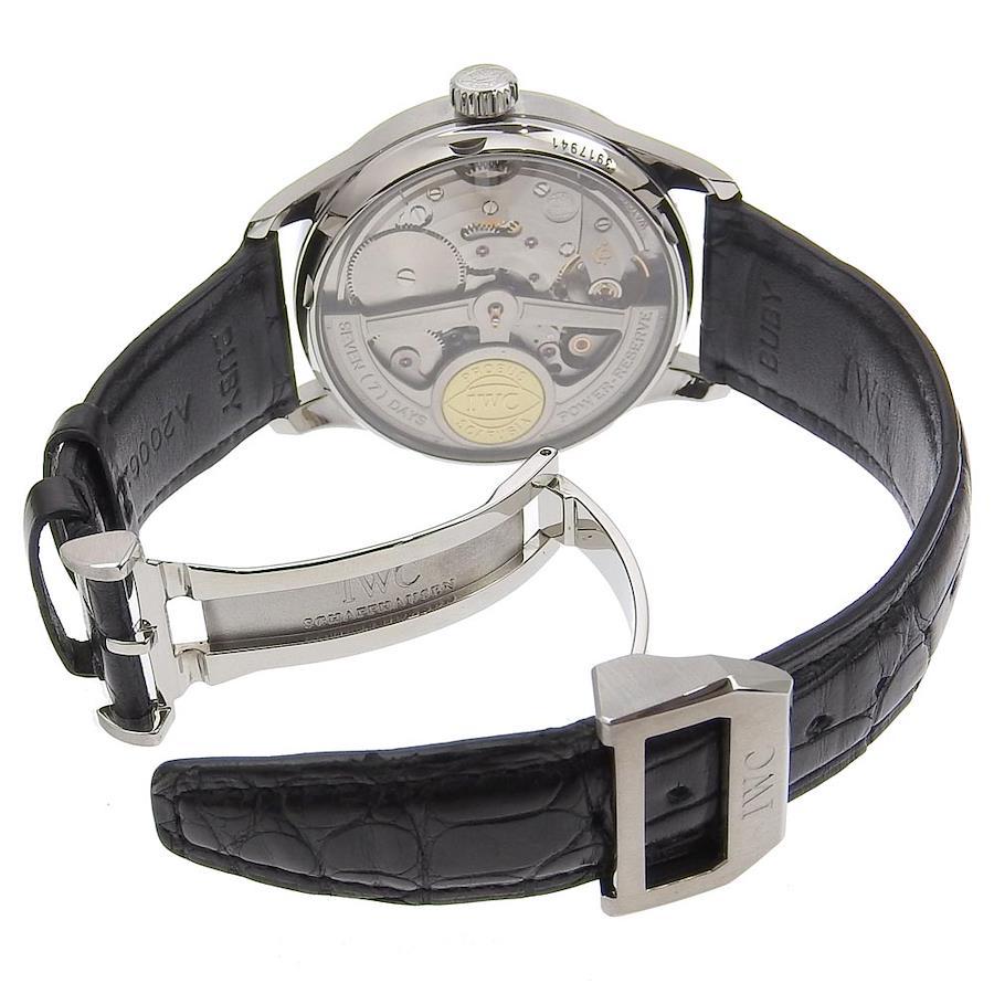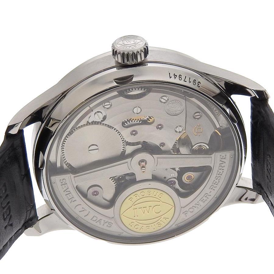 IWC Schaffhausen Portugieser 7 Days Watch, See-Through Back, IW500109, Stainless Steel and Leather, Automatic, Power Reserve, Black Dial, Men's, Pre-Owned, Rank A
