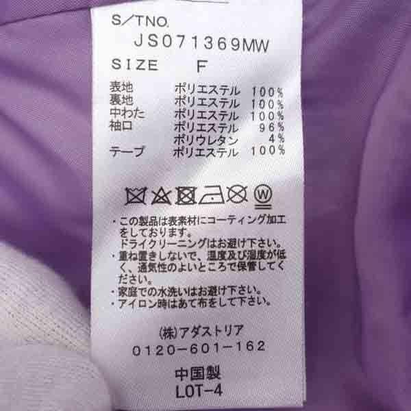 ・メーカー :JEANASiS / ジーナシス・製品型番 :JS071369MW・サイズ :表記サイズ:F,肩幅 (約cm):60,身幅 (約cm):70,着丈 (約cm):84,袖丈 (約cm):50,裄丈 (約cm):84,・色(柄)の系統:パープル・デザイン :(レディース)アウター/ジャケット・素材 :ポリエステル100%