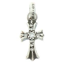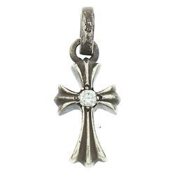 Chrome Hearts CRS BBYFAT DMND Baby Fat Cross Pendant with 1 Diamond on Both Sides, Silver, BCA238