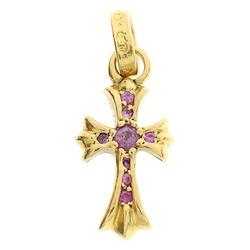 Chrome Hearts 22K CRS BBYFAT P/PSAP Baby Fat Cross Pave Pink Sapphire Pendant Top Gold-Gold