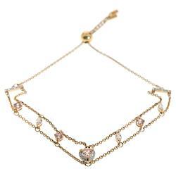 Swarovski Heart Crystal Stone Double Chain Bracelet in Gold/Pink for Women - Gold/Pink