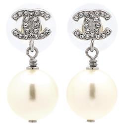 [Pre-owned] CHANEL Coco Mark Faux Pearl Rhinestone Earrings (One Side) / j39-1