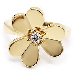 Pre-owned Van Cleef & Arpels Vintage Alhambra Pavé Diamond Ring, #50, 18K Yellow Gold, Women's.