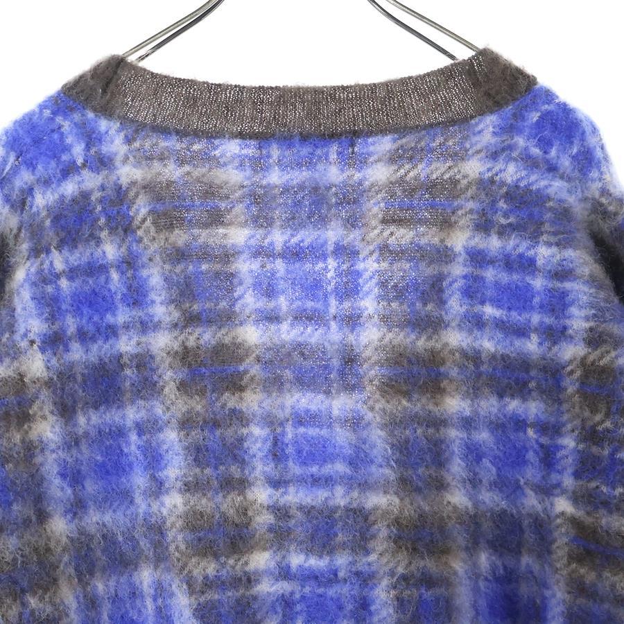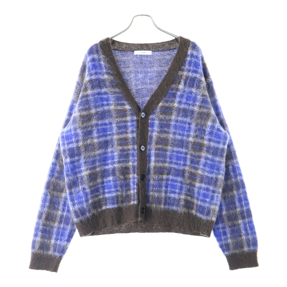 [モデル]23AW MOHAIR CHECKED CARDIGAN 4B チェック柄 ニット モヘアカーディガン ブルー/ブラウン Jie-23W-KN02