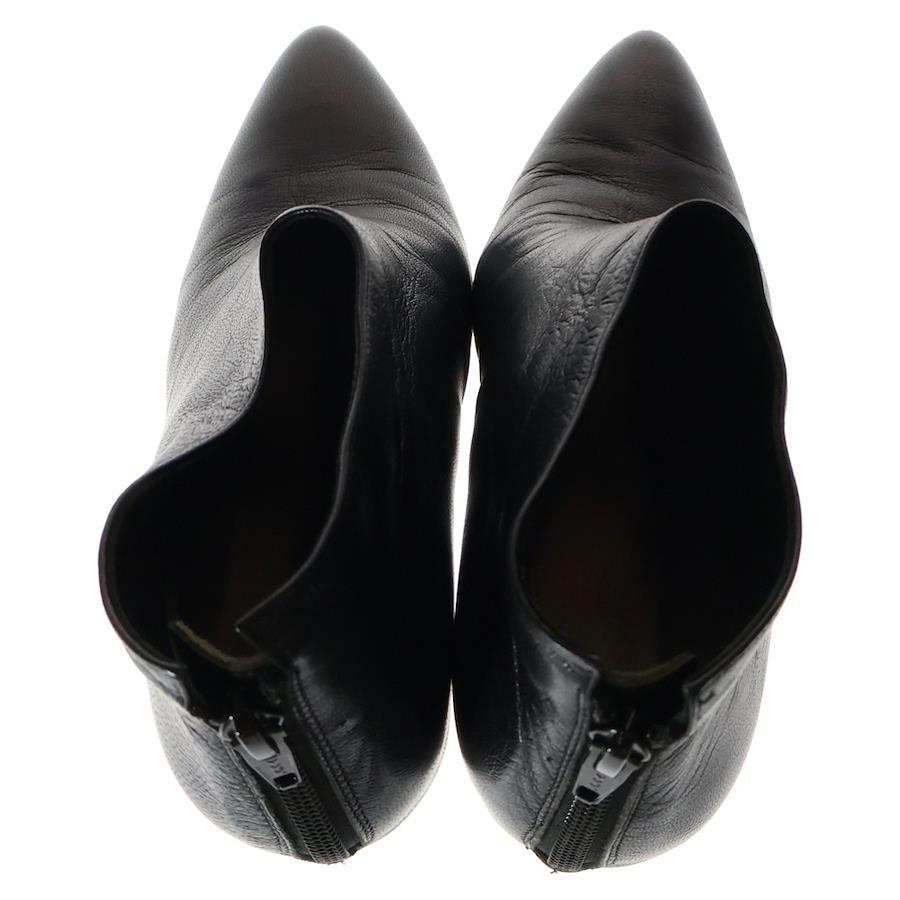 [モデル]レザー ヒール ショートブーツ パンプス ブラック レディース〇