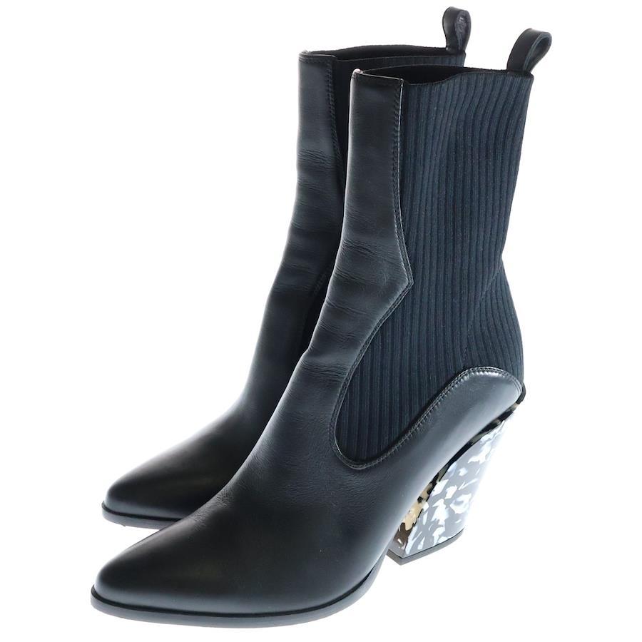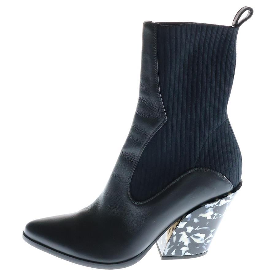 [モデル]20AW MELE 85 メレ マーブル柄 レザー サイドゴアブーツ レディース ブラック