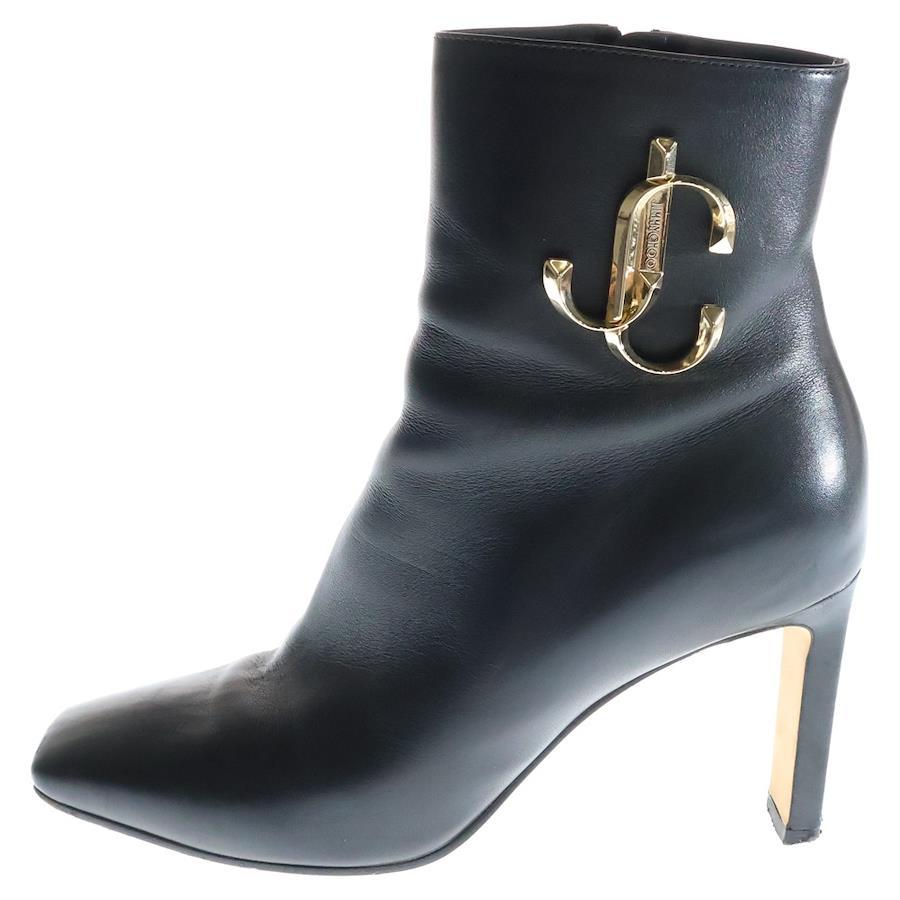 [モデル]MINORI 85 ミノリ JCロゴ レザー サイドジップ ヒールブーツ レディース ブラック