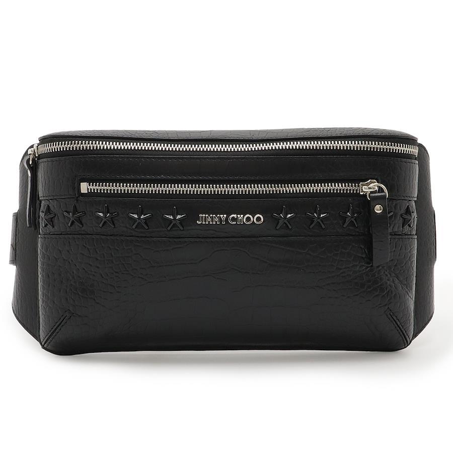 JIMMY CHOO Stars embossed waist bag/body bag in black with crocodile embossing and silver hardware