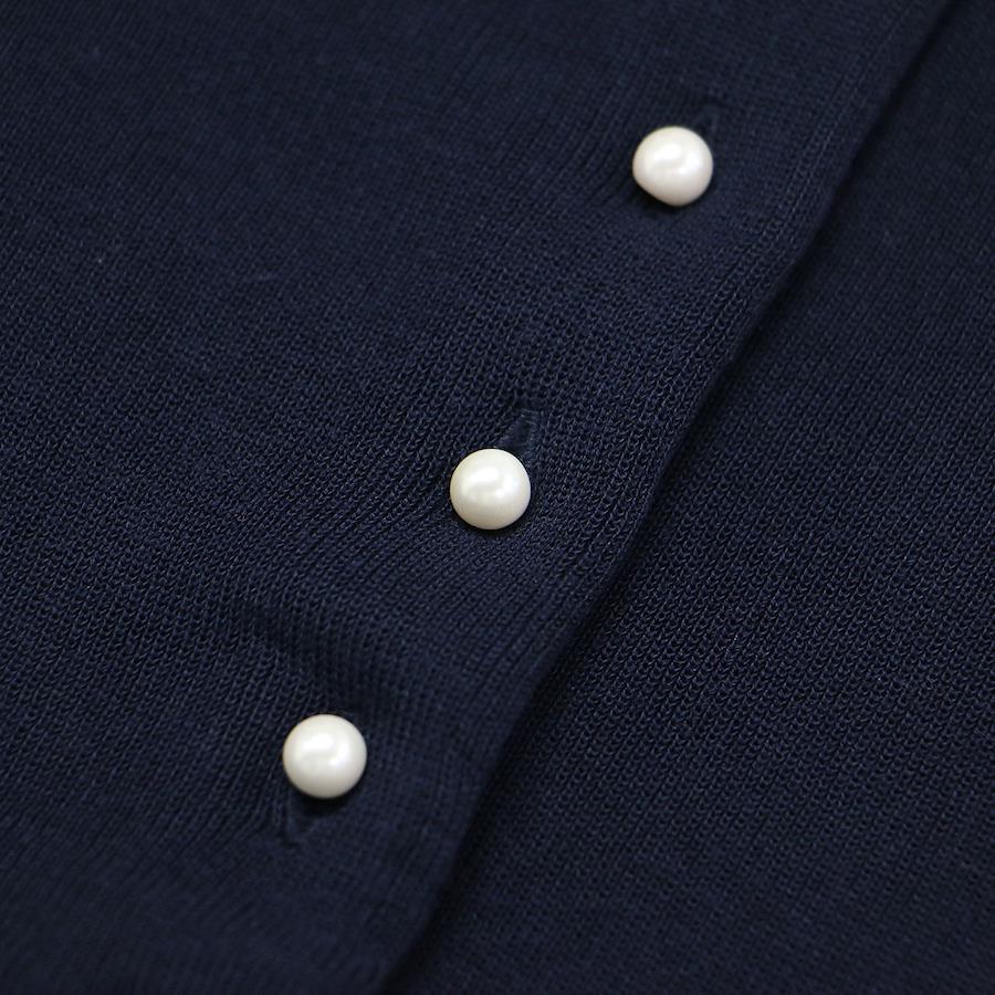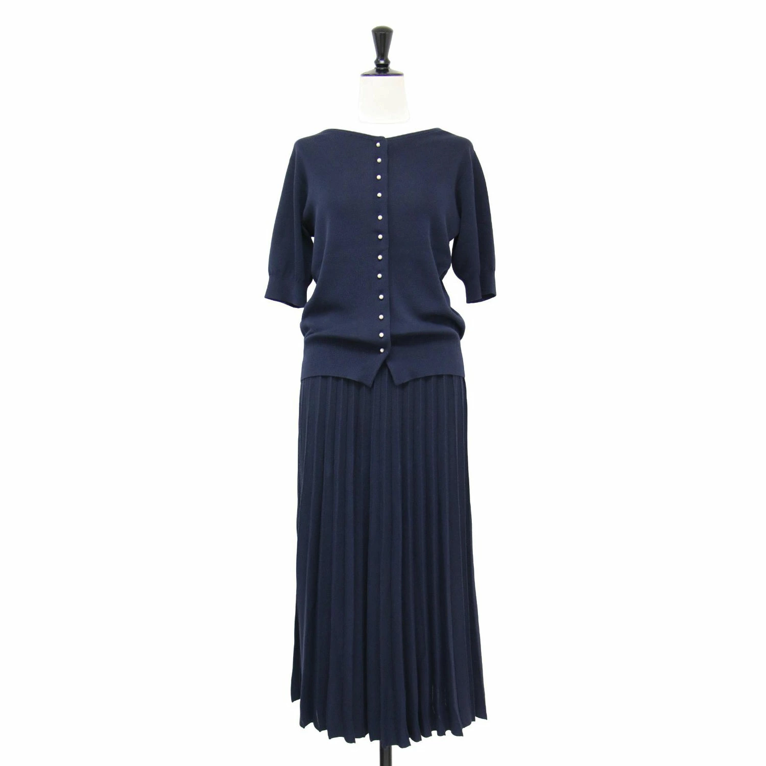 Jiyuku Navy, Size: 32 (XXS) | Spring/Summer 2023 High-Twist Cotton Acetate Knit Set / Skirt and Cardigan | Short Sleeve, 2-Way, Pearl Buttons, Midi Length, Cotton [Women's] [Pre-owned] [K4616]