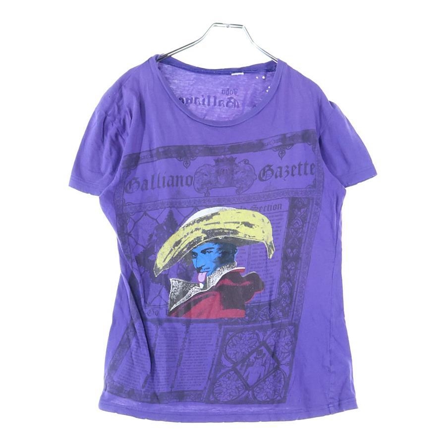 John Galliano Napoleon logo print distressed crew neck short sleeve T-shirt, purple, size M