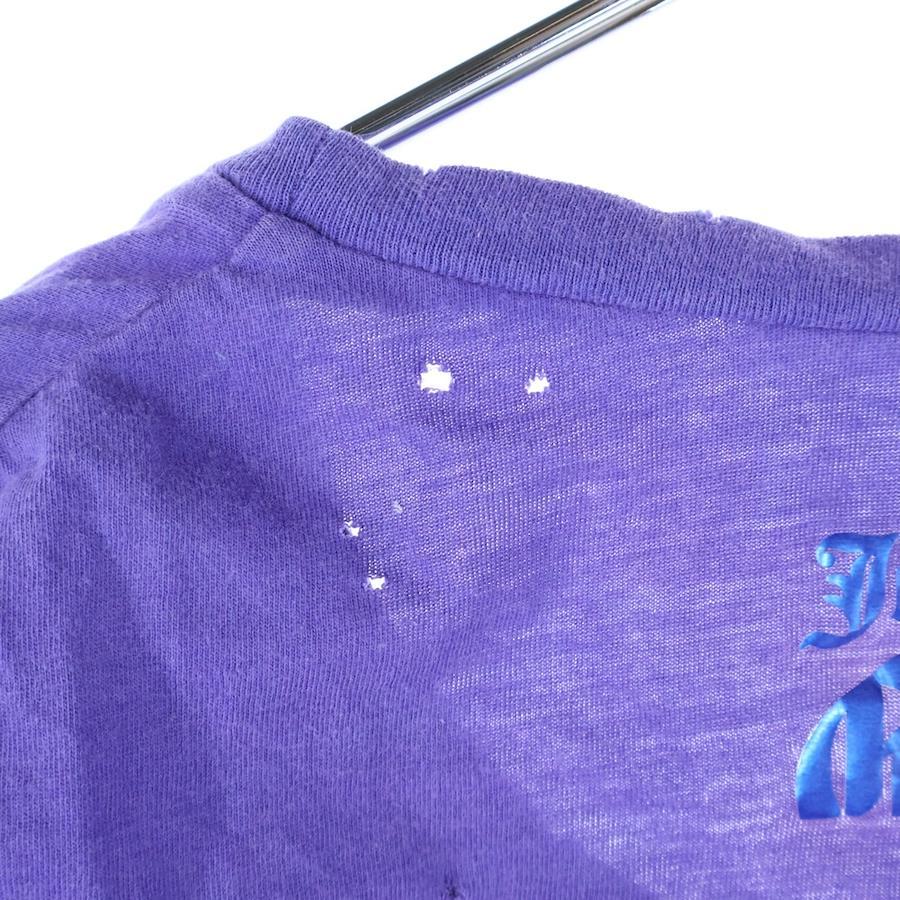 [モデル]ナポレオン ロゴプリント ダメージ加工 クルーネック 半袖Tシャツ カットソー パープル