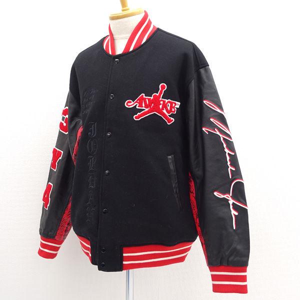 ・メーカー :JORDAN × Awake NY / ジョーダンアウェイクニューヨーク・製品型番 :FQ5439-657・サイズ :表記サイズ:L,肩幅 (約cm):55,着丈 (約cm):75,身幅 (約cm):65,袖丈 (約cm):65,・色(柄)の系統:ブラック レッド ホワイト・デザイン :(メンズ)アウター/ジャンパー・ブルゾン・素材 :本体、毛73%ナイロン27% 袖、牛革 リブ、アクリル69%毛28%ポリウレタン3% 裏、ポリエステル