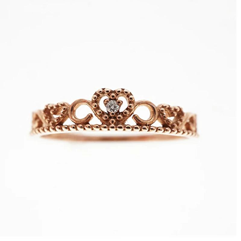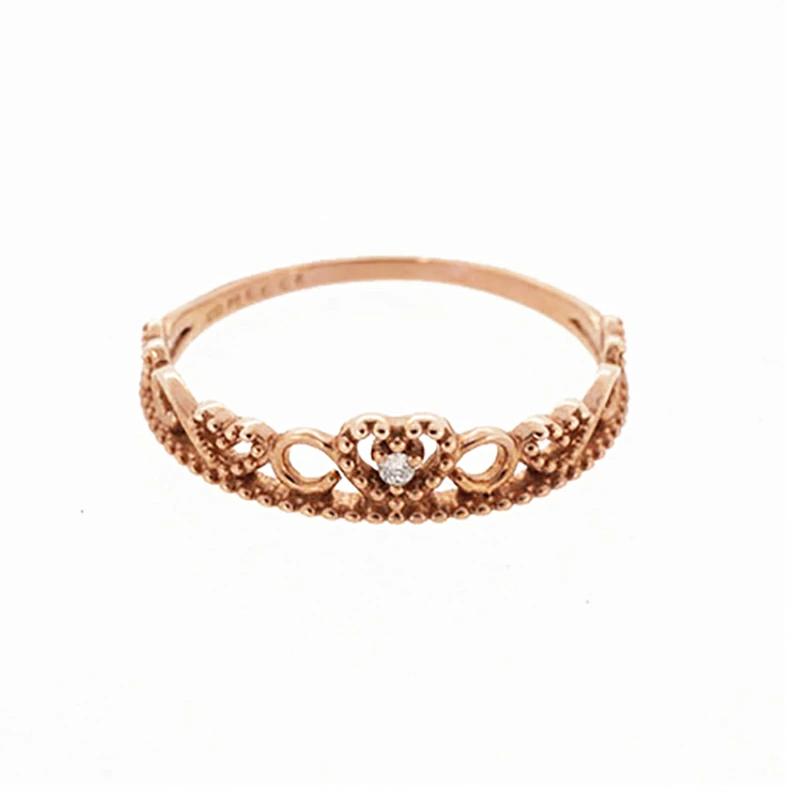 【ju102】ダイヤモンド リング/0.006ct/K10PG ピンクゴールド/ハート/一粒ダイヤ/王冠モチーフ/未使用 【中古】 レディース