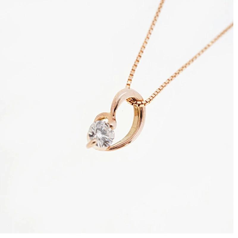 [ju318] Diamond Necklace / 0.07ct / K10PG Pink Gold / Single Diamond / Unused