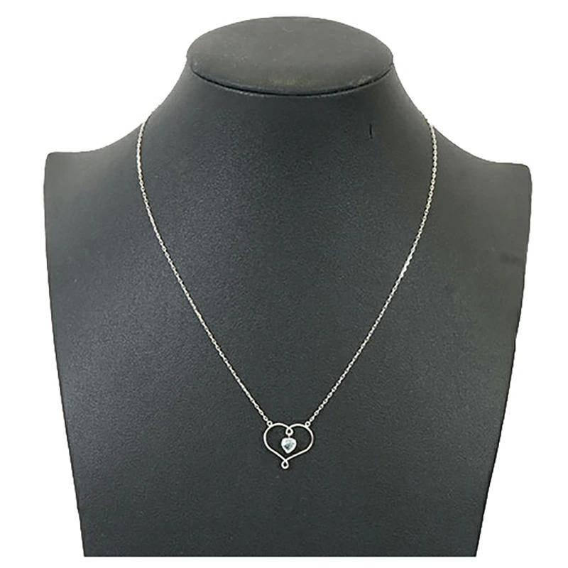 【jv377】ダイヤモンド ネックレス/K10 ホワイトゴールド/ハート/アクアマリン/未使用 【中古】 レディース