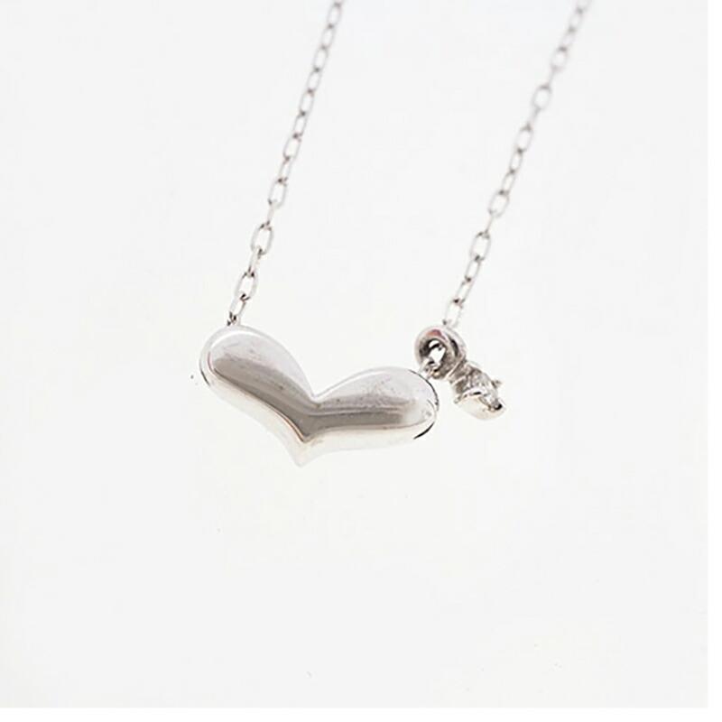【jv475】 ネックレス ハートモチーフ K10WG ホワイトゴールド ダイヤモンド 0.01ct 未使用【中古】レディース
