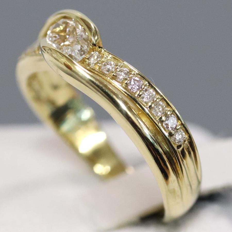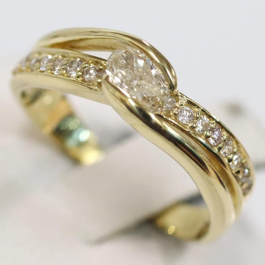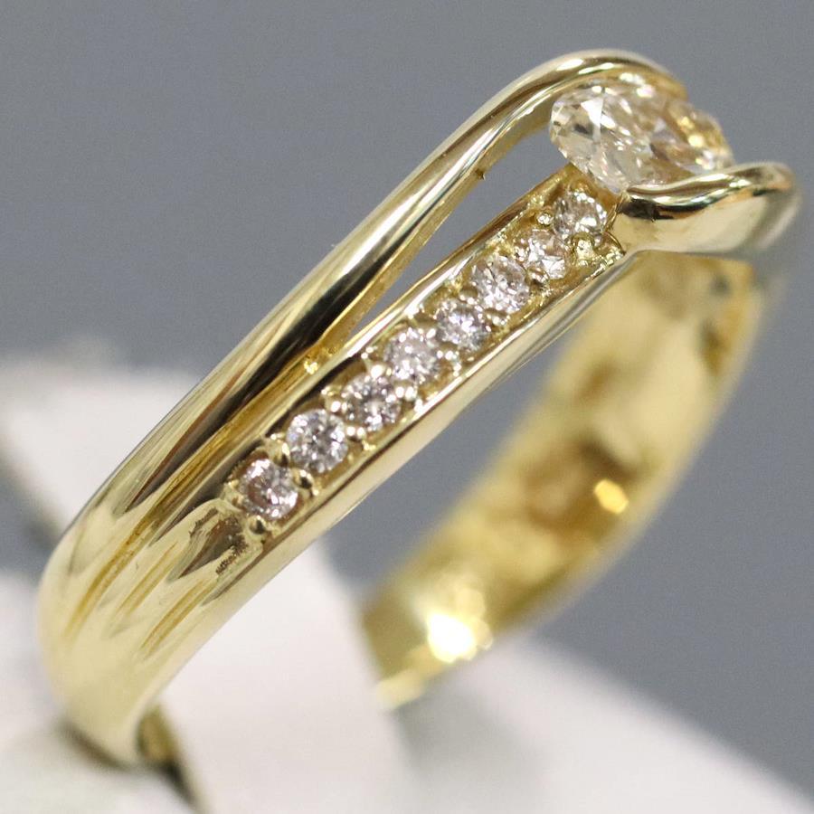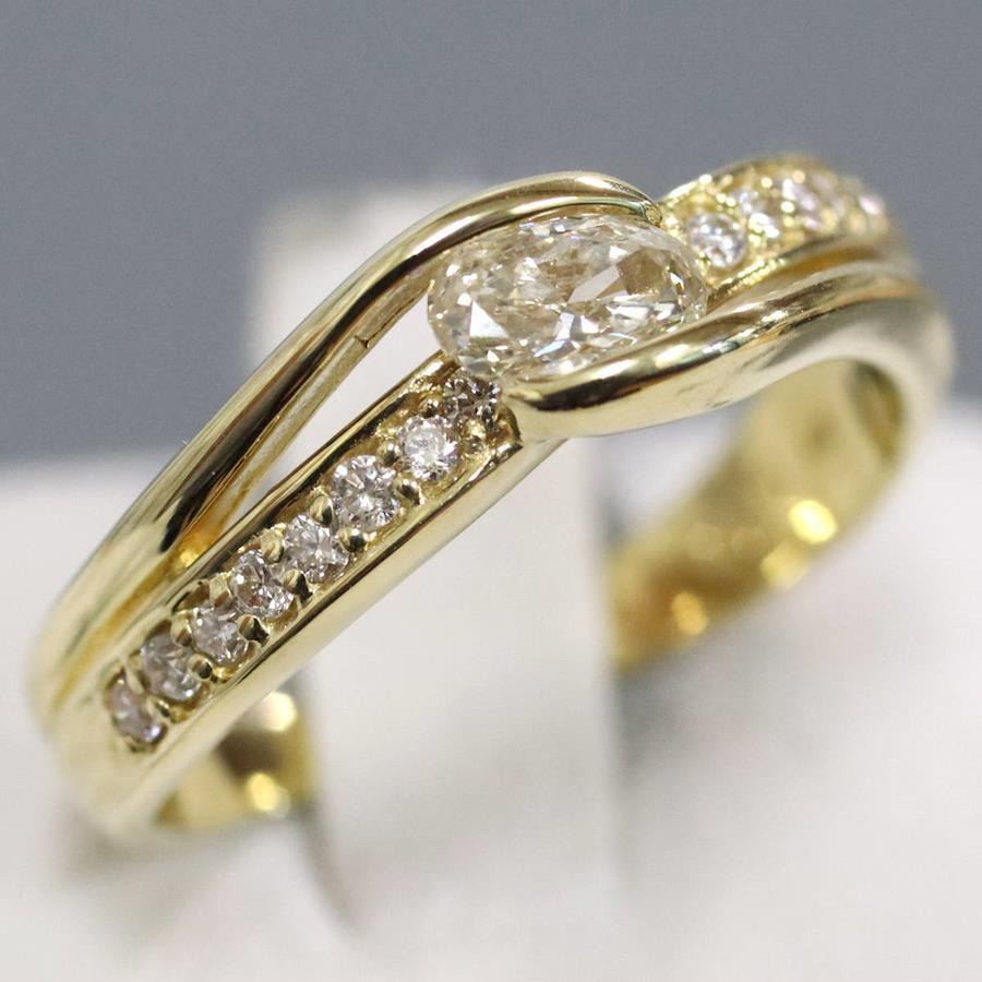 K18ダイヤモンドリングの中古品です。中石のオーバルカットのダイヤモンドはわずかに黄色がかった色味です。ダイヤモンドはややインクルージョンがありますが、肉眼ではわかりません。地金には小傷があります。+---+---+---+---+---+。{状態}AB{素材}K18YG,ダイヤモンド{サイズ}当店計測約#10{リング幅}約2-5mm。{その他}D0.25ct,D0.15ct,3.5g。{付属品}なし(サービス箱をお付けします){お問合せ商品番号}25083020+---+---+---+---+---+。