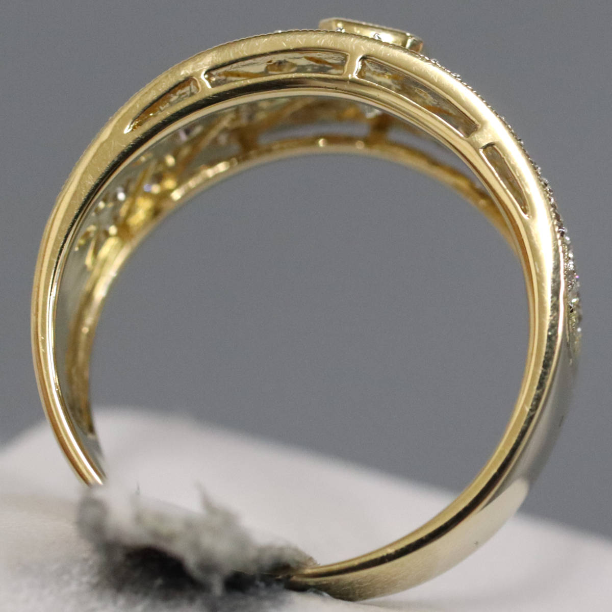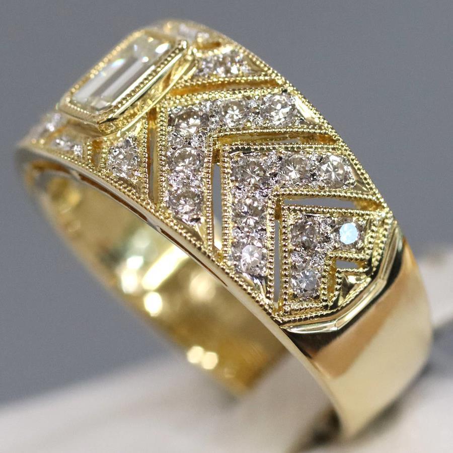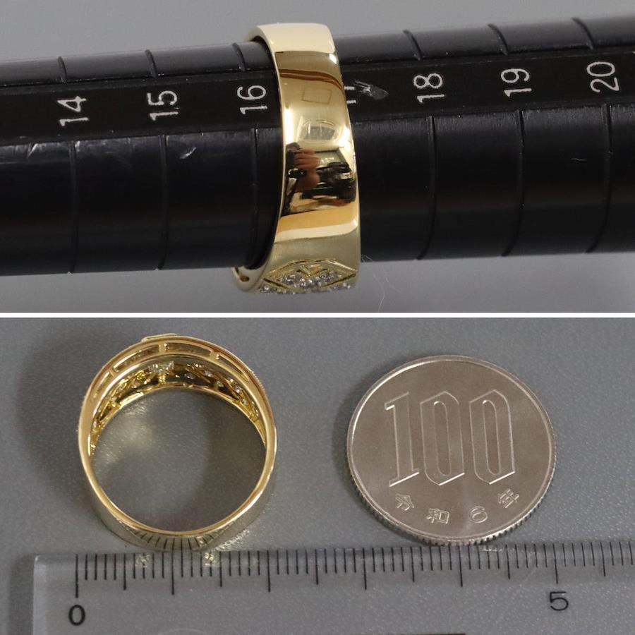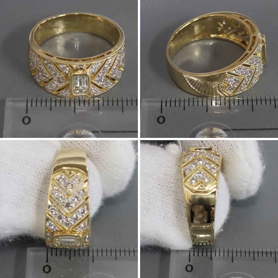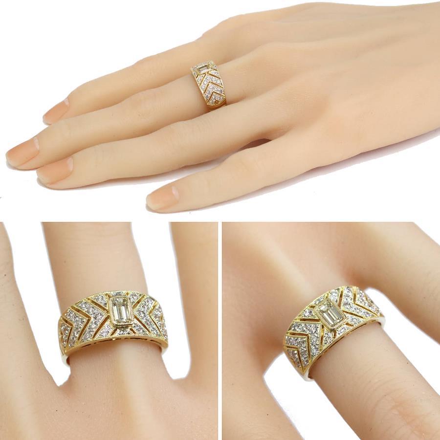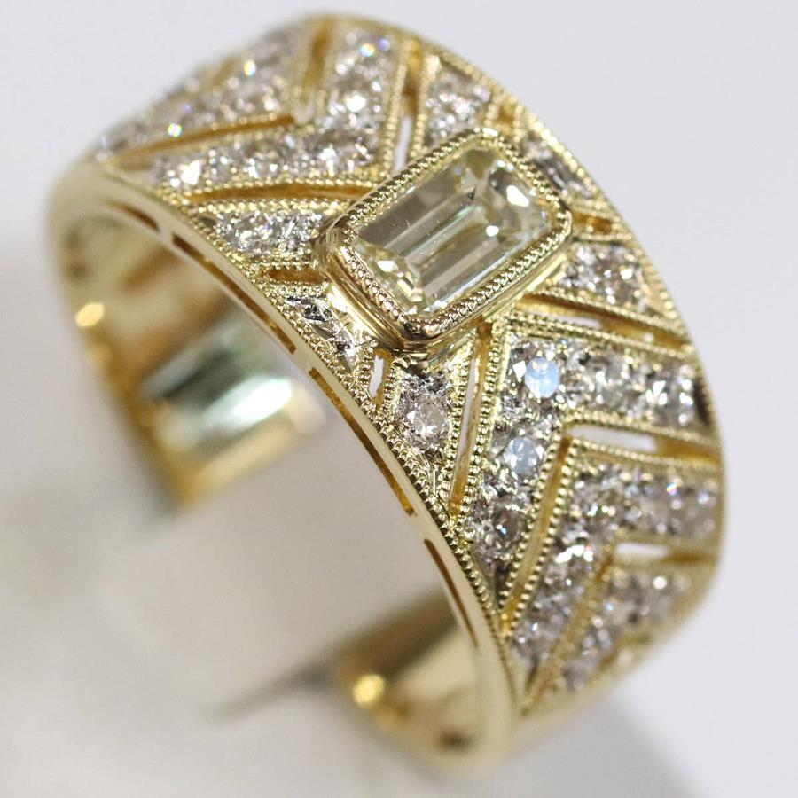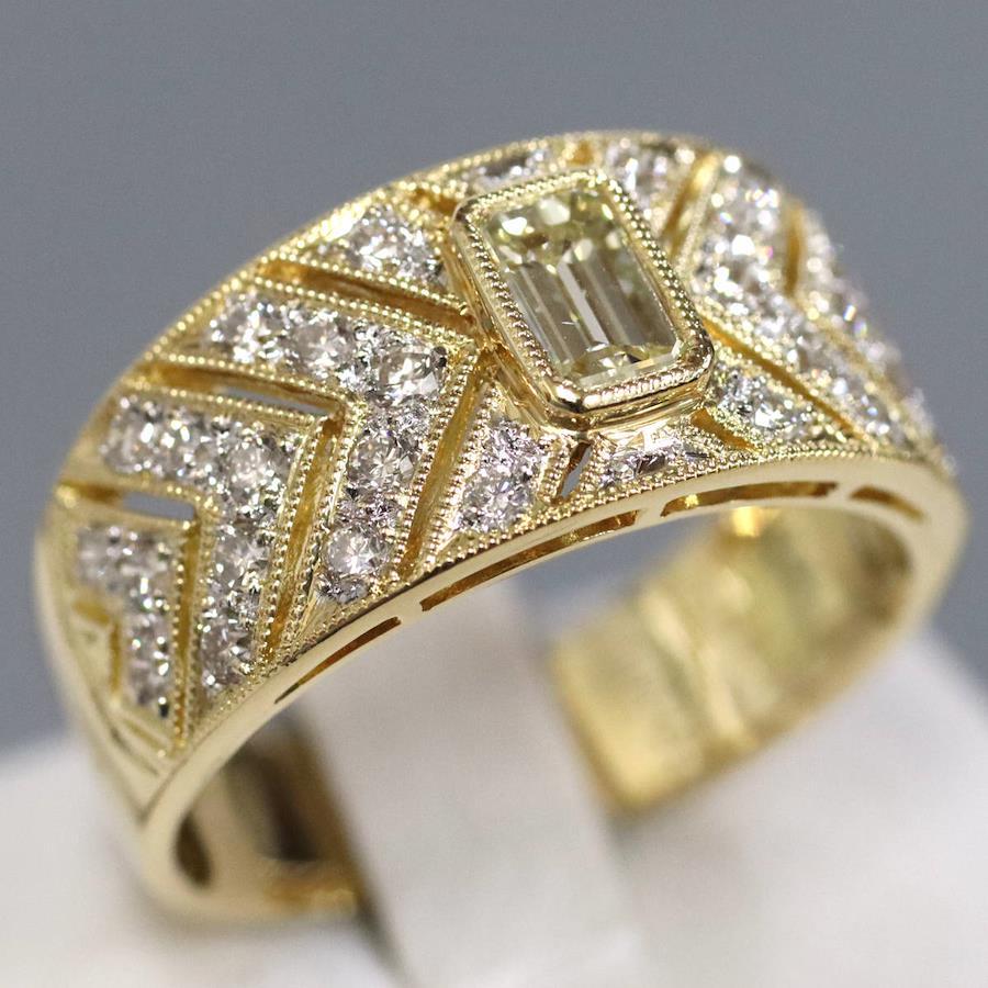 K18ダイヤモンドリングの中古品です。エメラルドカットの施された照り良く輝くイエローダイヤモンドの中石が目を引きます。脇石のダイヤモンドはかすかに黄味がかっておりますが無色に近いお色味です。インクルージョンがあるものの、肉眼ではわかりません。ルーペで見ると地金にサイズ直しの跡やスレ傷、あたり傷が見られ、使用感があります。+---+---+---+---+---+。{状態}A{素材}K18,ダイヤモンド{サイズ}当店計測約#17{リング幅}約5-10mm。{その他}D0.52,D0.60,6.8g。{付属品}なし{お問合せ商品番号}25076045+---+---+---+---+---+。