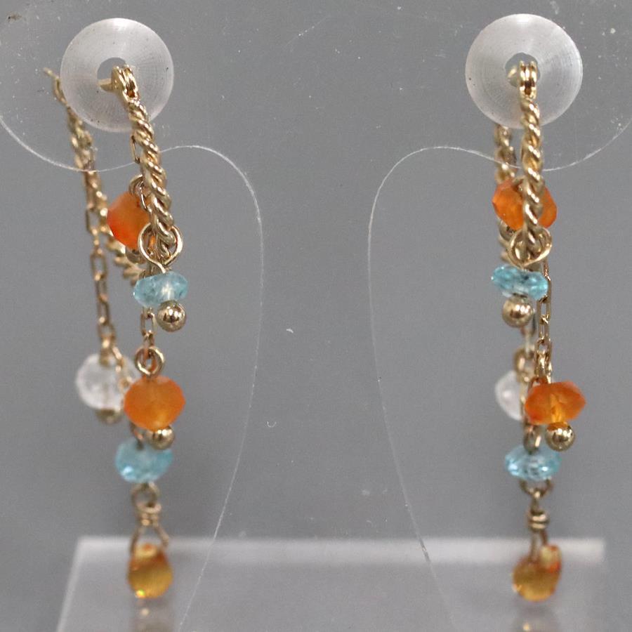 K18/K10マルチカラーストーンピアスの中古品です。水色 オレンジ 白のカラフルな色石がセットされています。地金にはわずかに小傷があります。+---+---+---+---+---+。{状態}A{素材}K18/K10,色石{サイズ}約W14mm × H30mm。{その他}1.7g。{付属品}なし(サービス箱をお付けします){お問合せ商品番号}21016071+---+---+---+---+---+。